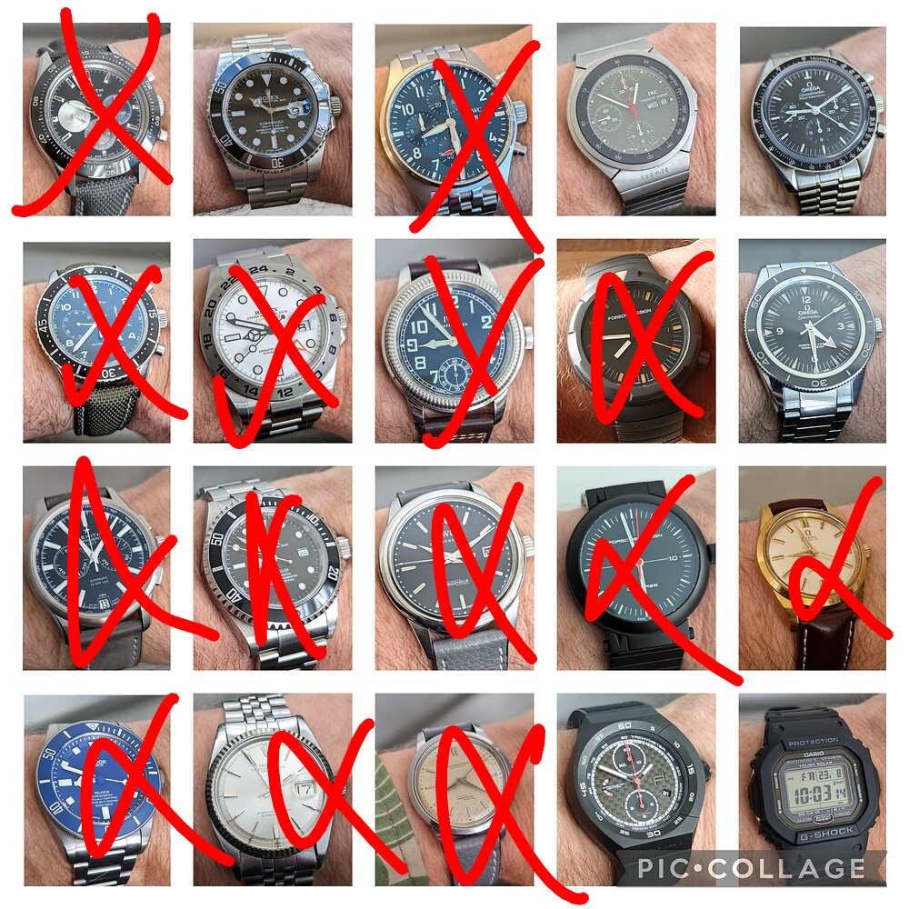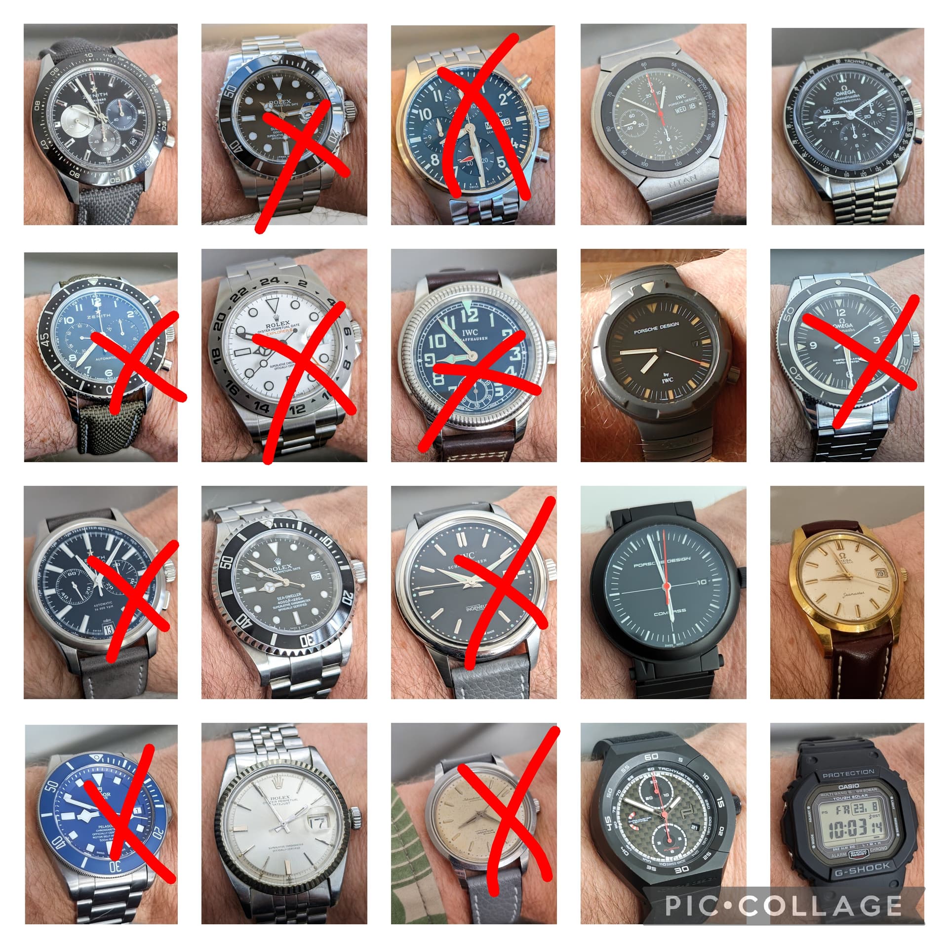Waarom zou je überhaupt wat weg willen doen? Zeker als je zoals je zegt niet op een paar euro’s kijkt. Ik zie een erg mooie gebalanceerde collectie. Mooi opgedeeld in thema en merk. De Porsche design horloges heb ik persoonlijk niks mee naar gezien je er 4 hebt die ook nog eens verschillend zijn zal je er wel een zwak voor hebben en met een reden om de collectie hebben. Als er dan toch wat weg moet zou ik een Zenith of IWC minder doen of de Porsche designs dan.