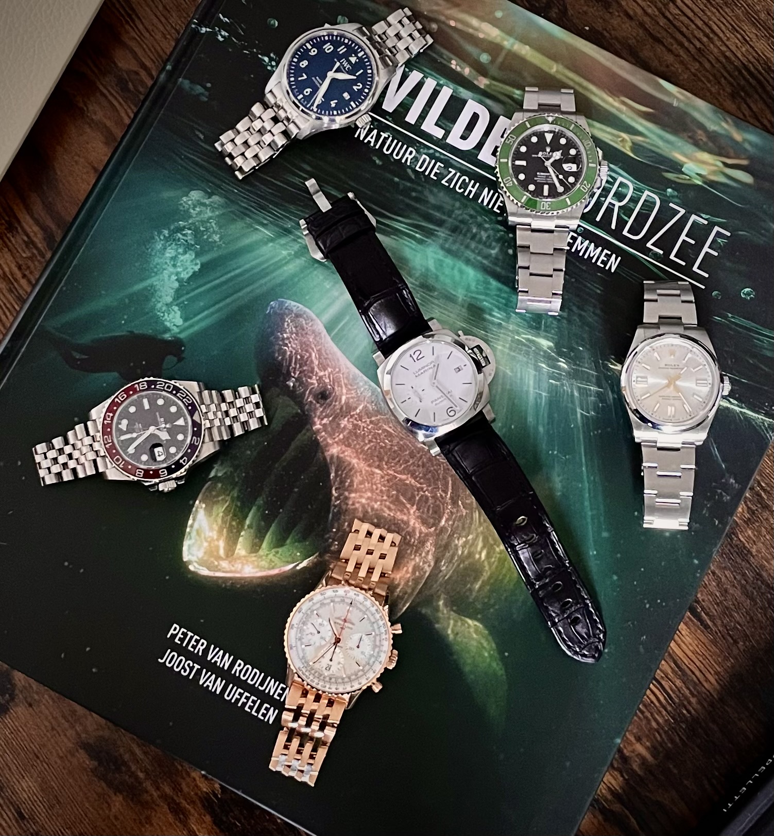 De Breitling met groene wijzerplaat of die Speedmaster die je eerst had zijn meer mijn smaak dan de Navitimer maar het zorgt zeker voor diversiteit.