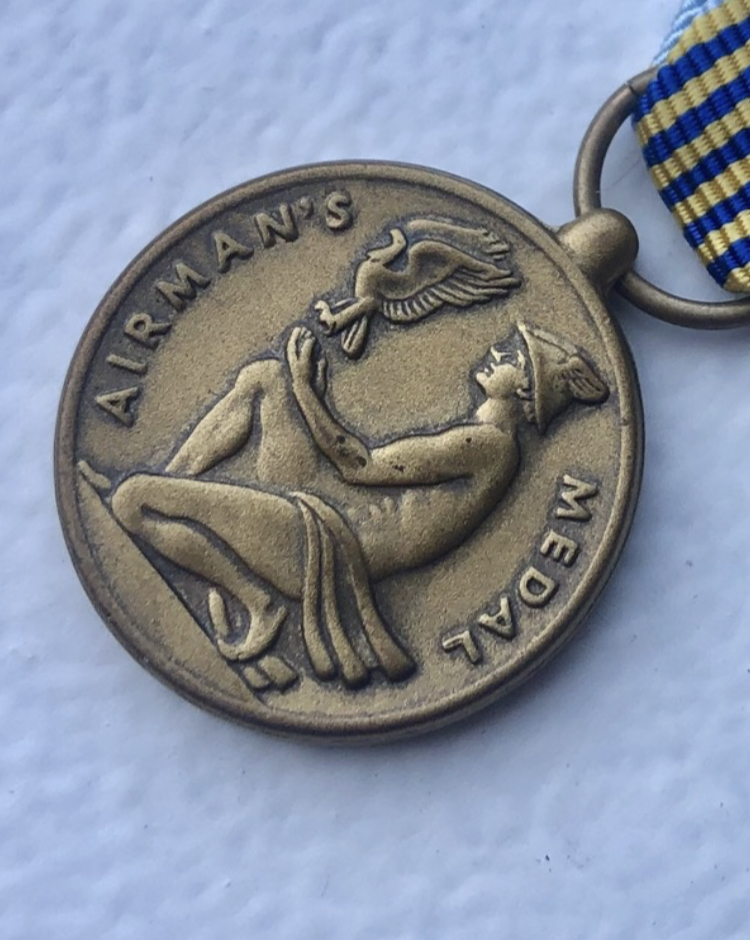 Online kwam ik een Airman medaille tegen. Betreft een Medal of honor die vanaf de jaren 60 wordt uitgereikt aan leden van de U.S. airforce die vrijwillig tijdens strijd een leven redden. Die moest ik natuurlijk meteen hebben:
