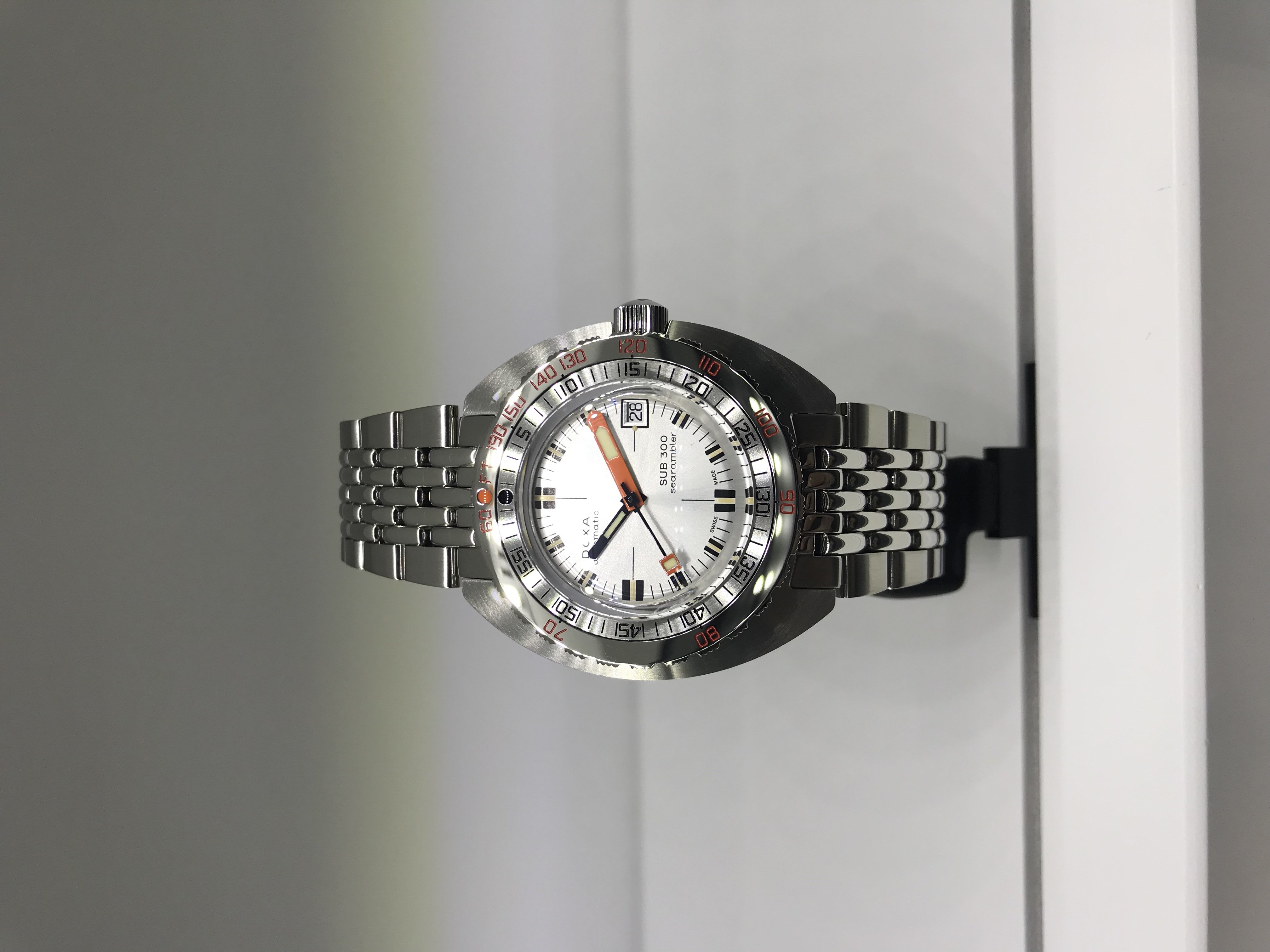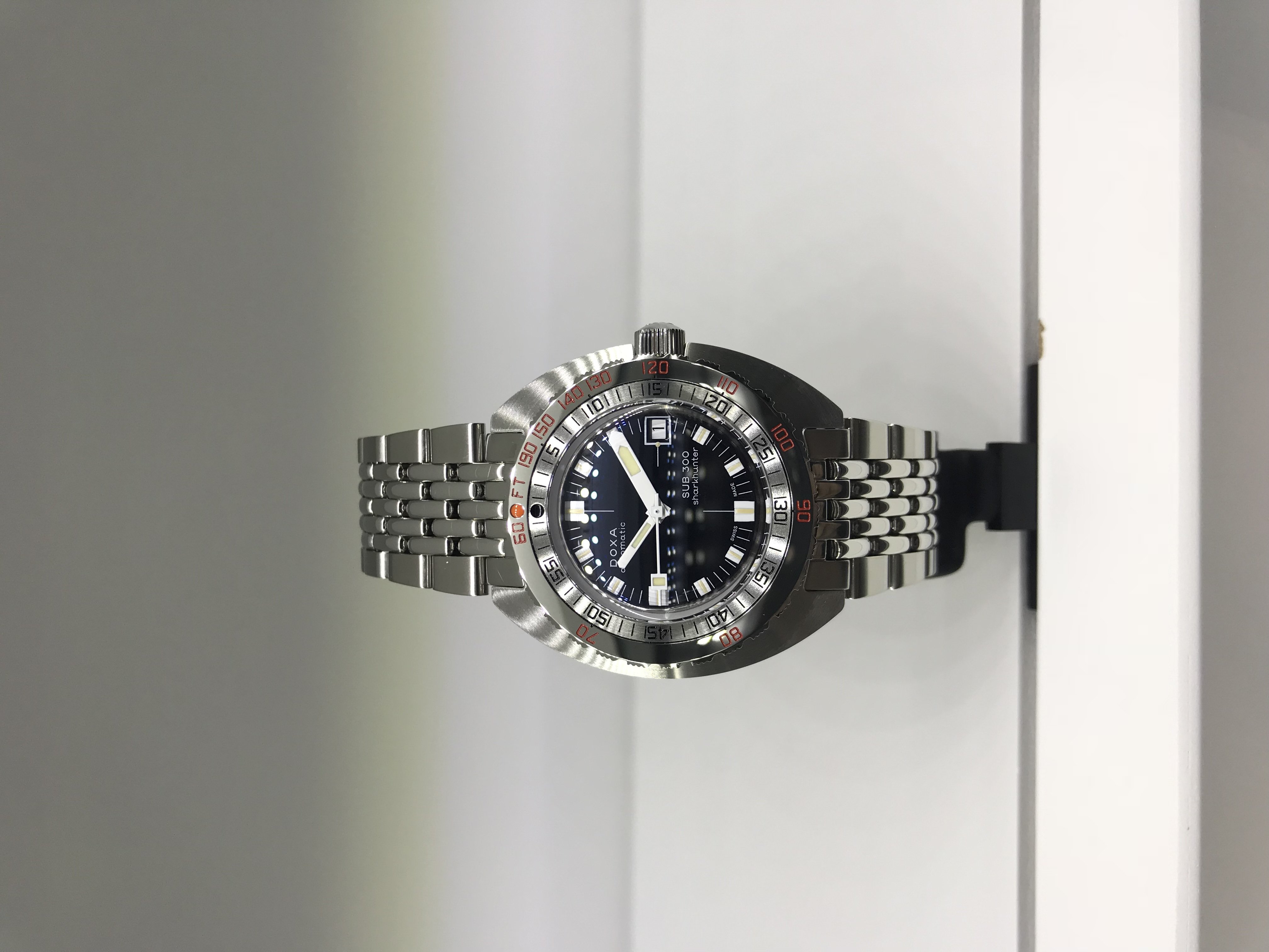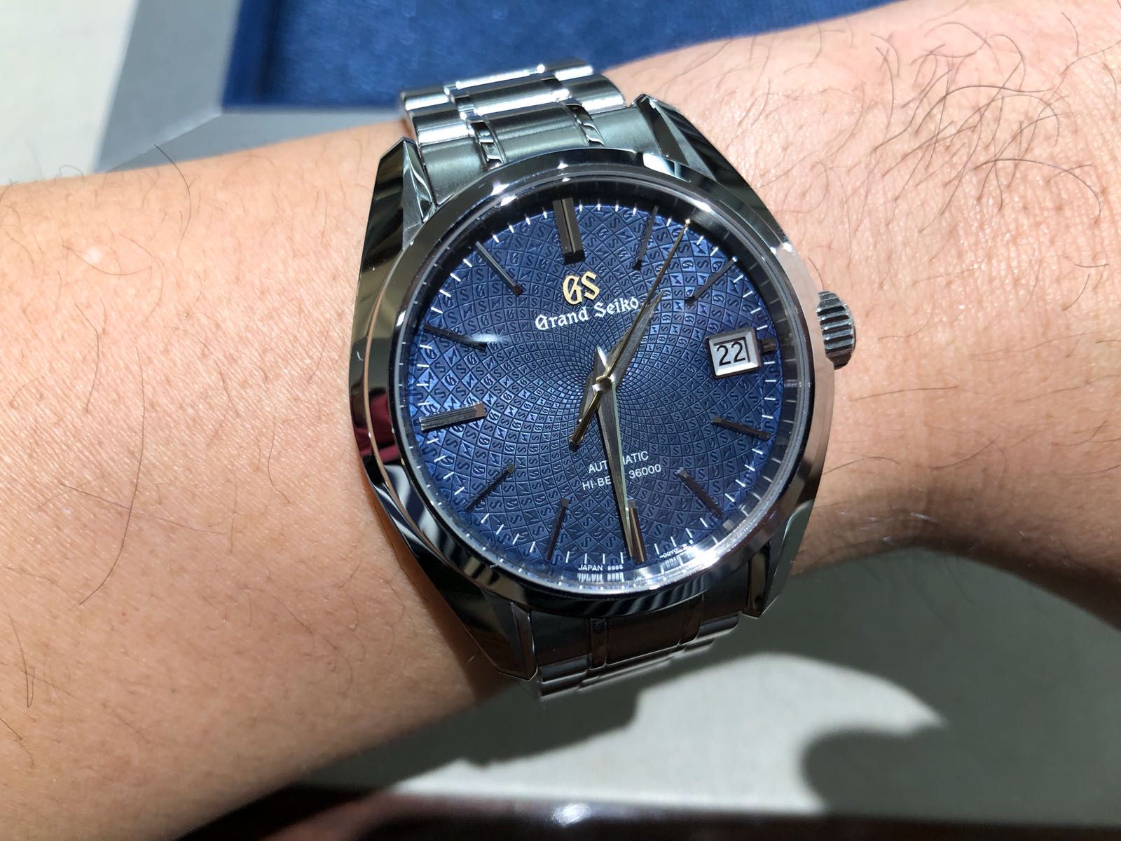 Benieuwd hoe de sunburst blauwe dial in het echt is. Nog meer benieuwd naar de beleving van het “gewicht” als gevolg van de volledig titanium kast en geïntegreerde band