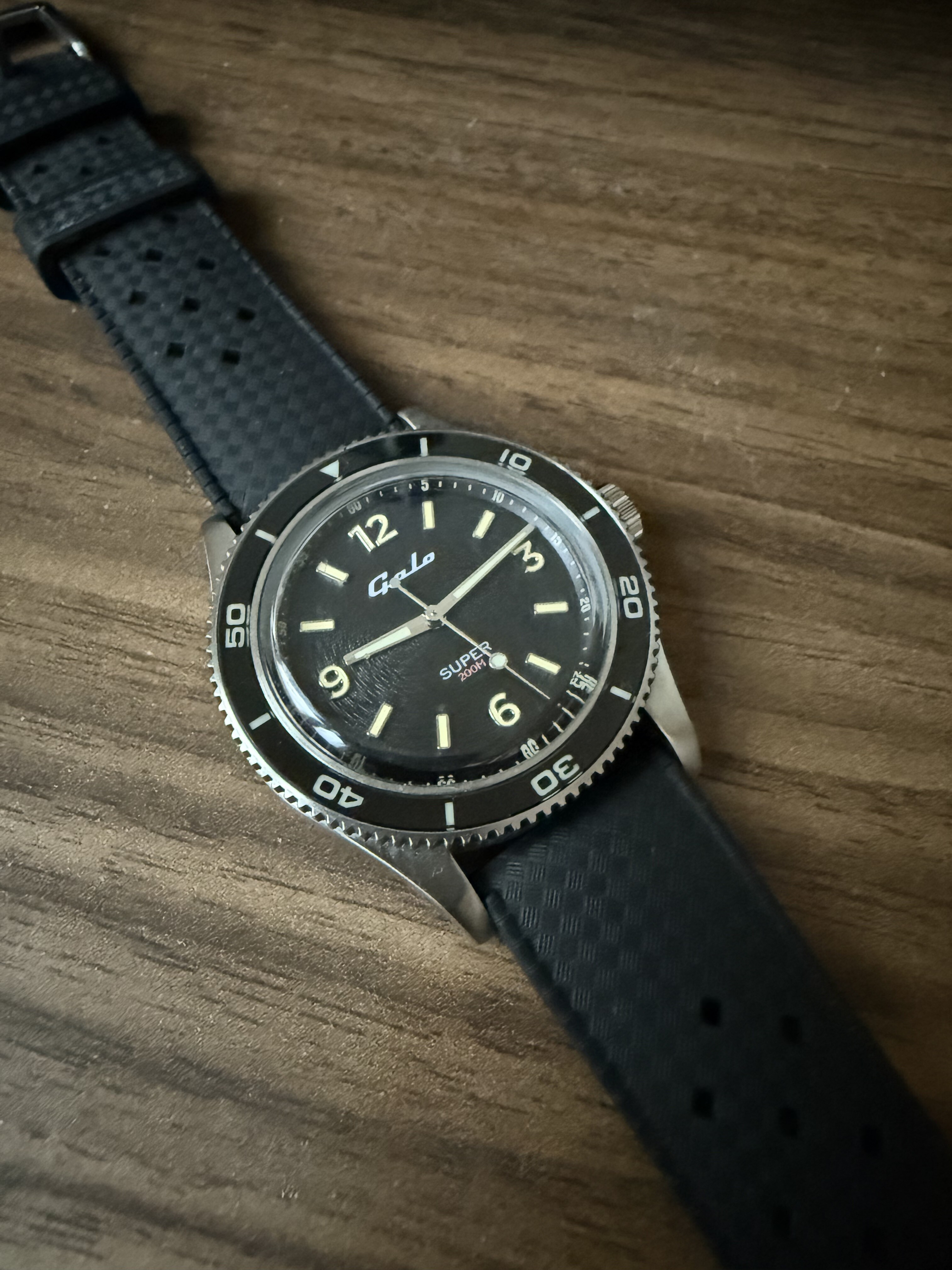 Was zelf erg gecharmeerd van de vintage look van de Galo en heb hem een half jaar geleden aangeschaft. Nog nooit met bracelet gedragen, maar direct de zwarte strap erop gezet. Erg tevreden met de movement en prima nauwkeurig.