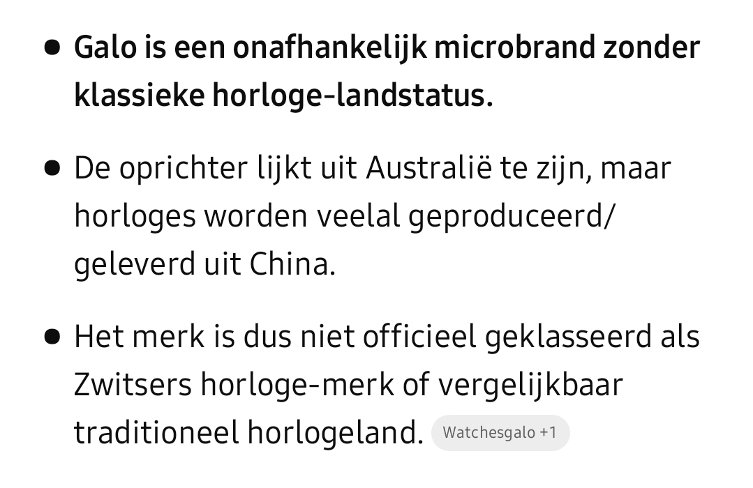 Het horloge is de prijs dubbel en dwars waard. Heeft prachtige, unieke details, goede verhoudingen, prima specs. De designer van Galo snapt heel goed wat mooi is uit het verleden en heeft dit op een fraaie manier verwerkt. Over smaak valt niet te twisten, maar dit is uitstekend gedaan. Enige wat ik er op aan kan merken is dat de bezel actie wat stroef gaat, maar wel zonder play.