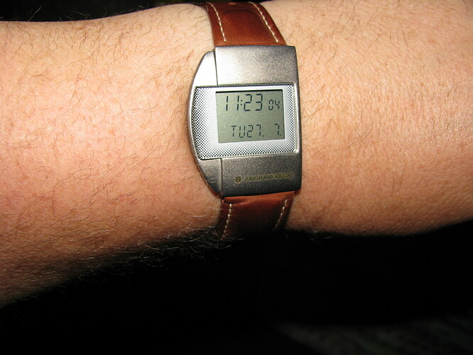 Misschien dat ik 'm, later als ik groot ben, nog eens om de pols slinger. De band is wonderwel nog helemaal gaaf en ik vermoed dat die - vanwege de antenne - niet makkelijk meer te krijgen is.