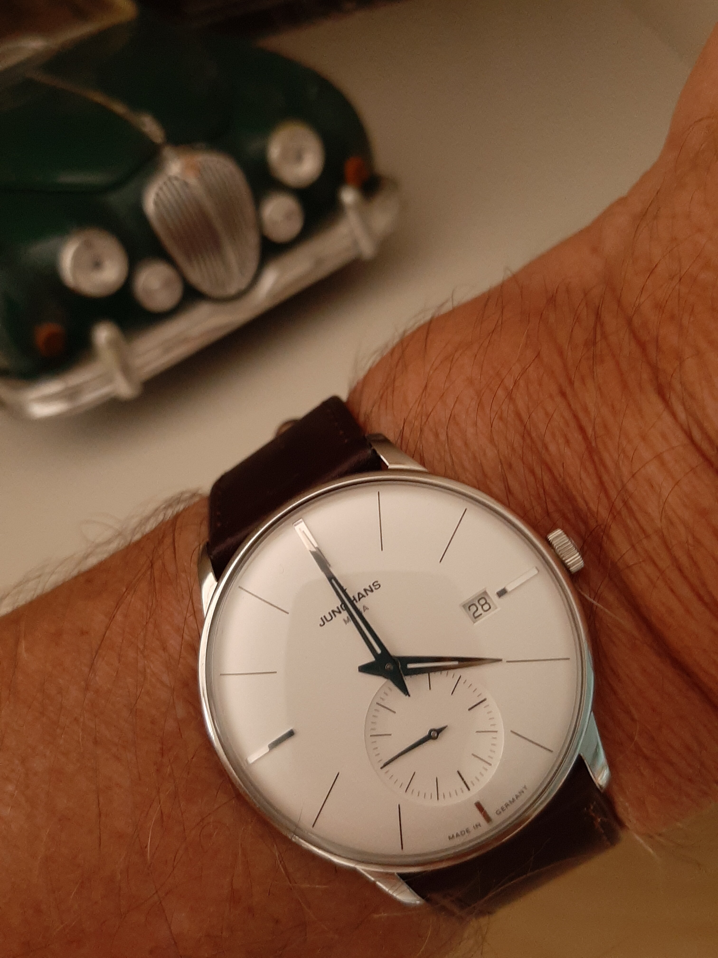 Ik schat mijn MEGA 25 rond 1990 aan mij verkocht is, ruim 30 jaar jong dus. Reden dat ik 'm niet draag is dat mijn smaak een tikkie veranderd is in de loop van de jaren, ik vind deze te klein voor aan mijn pols. Ik heb wel eens aan gedacht deze te verpatsen, maar ik heb werkelijk geen enkel idee wat zo ding nog mag opbrengen en bovendien kan 'ie eerst nog wel een poetsbeurtje gebruiken. Zitten wat krassen op de kast …