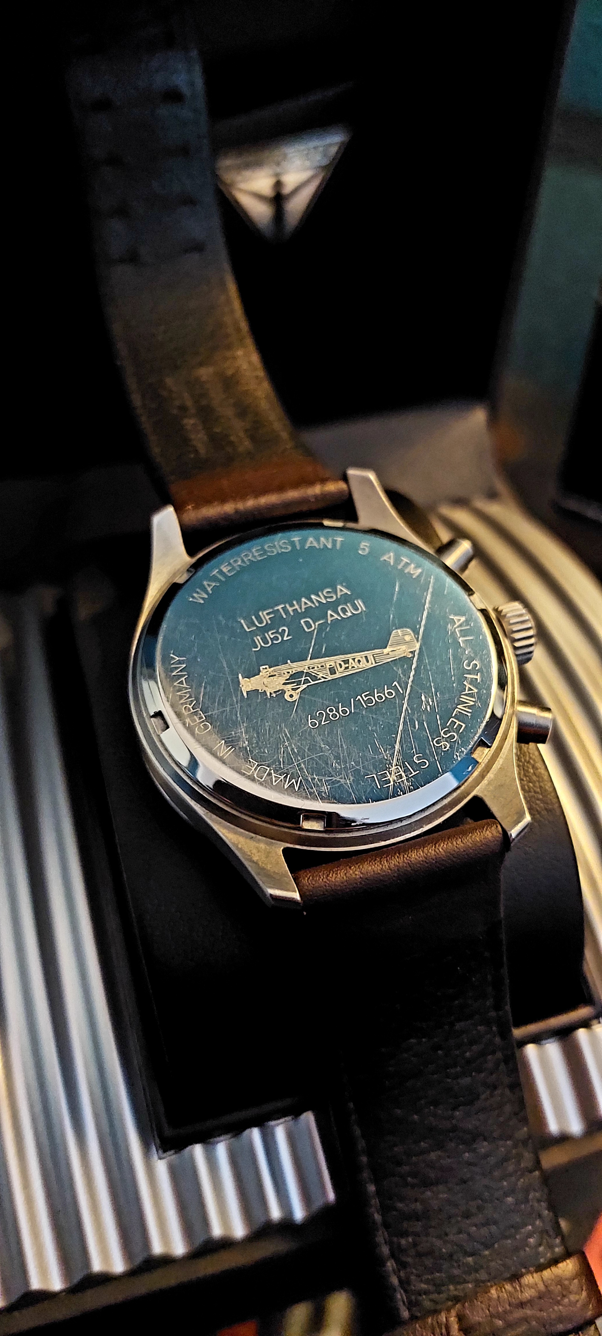 Zit ook nog wel wat verschil tussen het oude en het nieuwe Junkers. Vroeger werden de horloges gemaakt en ontworpen door Pointtec, een Duitse firma die ook Zeppelin in het portfolio heeft. Sinds ik denk een jaar of twee heeft Pointtec de rechten op de naam “Junkers” niet meer en zijn ze verder gegaan als “Iron Annie”. Junkers horloges worden nu gemaakt in opdracht van de oorspronkelijke eigenaren van de merknaam “Junkers” en ik weet niet wie nu de bron is eerlijk gezegd.