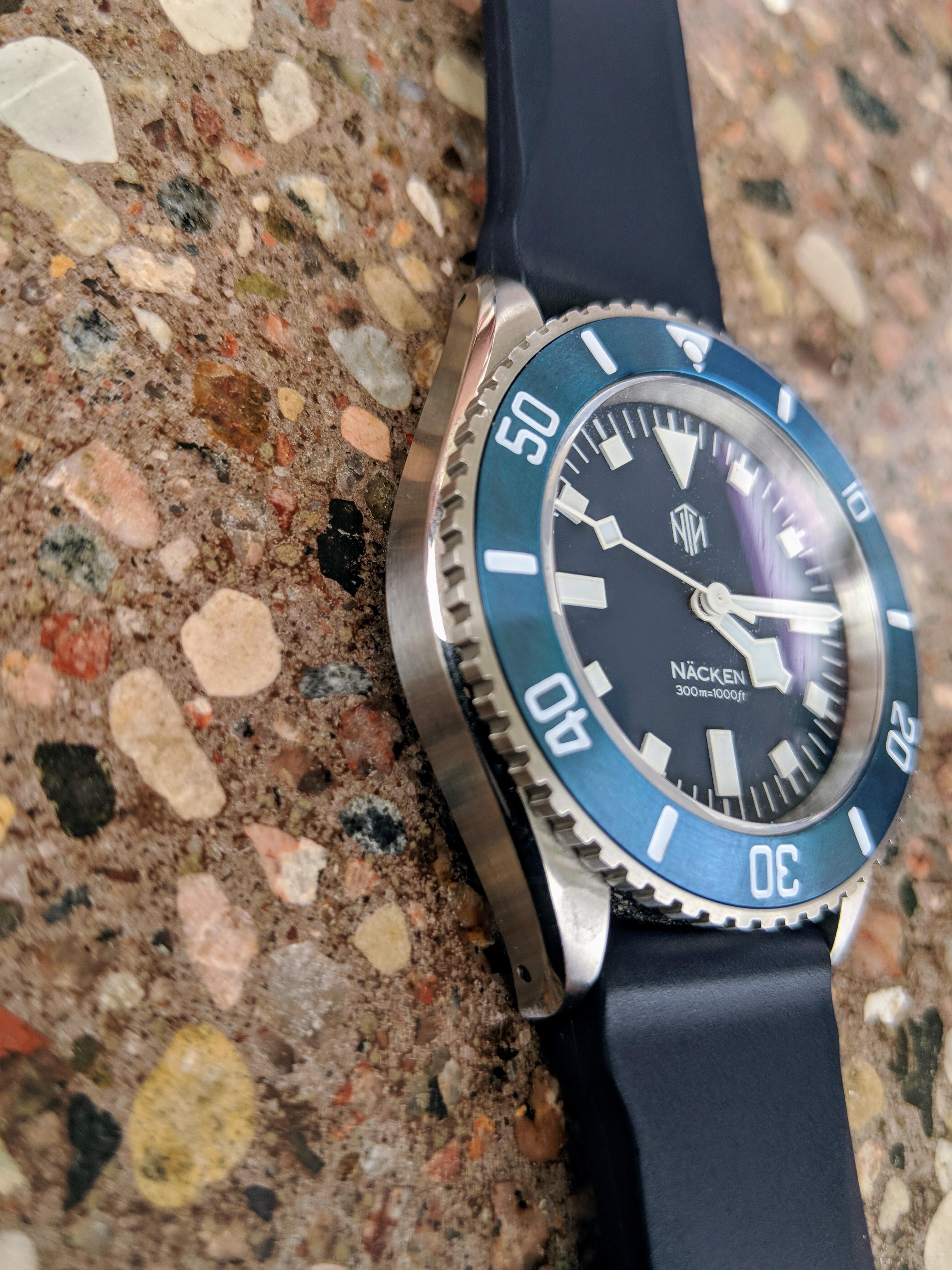 Deze Nomos vond ik wel leuk. Een apart gezicht met speciale lugs. Ik noem m’n Radiomir ook wel eens een duiker, dus ik kan wel volgen.