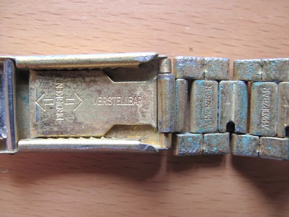 Op het bandje zijn tekenen van corrosie (groen) van het dragen, het is nooit vochtig opgeborgen, het goud op de foto’s is flets, in het echt veel feller (suri-goud-kleur) naar aanleding van wie ik het horloge heb gekregen kan het zeer aannemeljk uit Suriname komen.