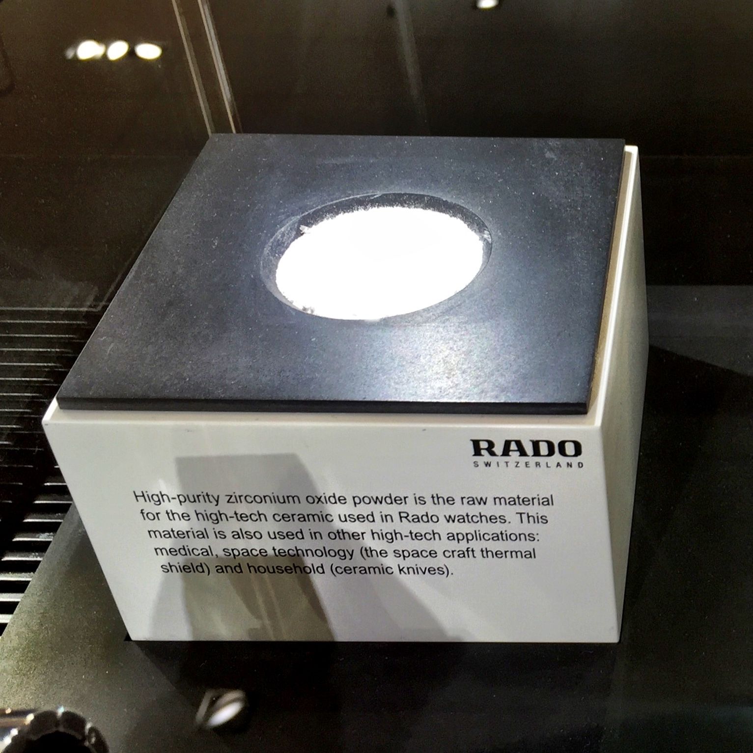 Zojuist even bij de Bijenkorf op de horlogeafdeling rondgekeken terwijl mân vrouw âotherwise occupiedâ was. Op zich vind ik daar doorgaans weinig naar mijn smaak, maar in de Rado display (die ik meestal mijdt ) viel mijn oog op de volgende aardige display die het keramische proces uitlegt.
