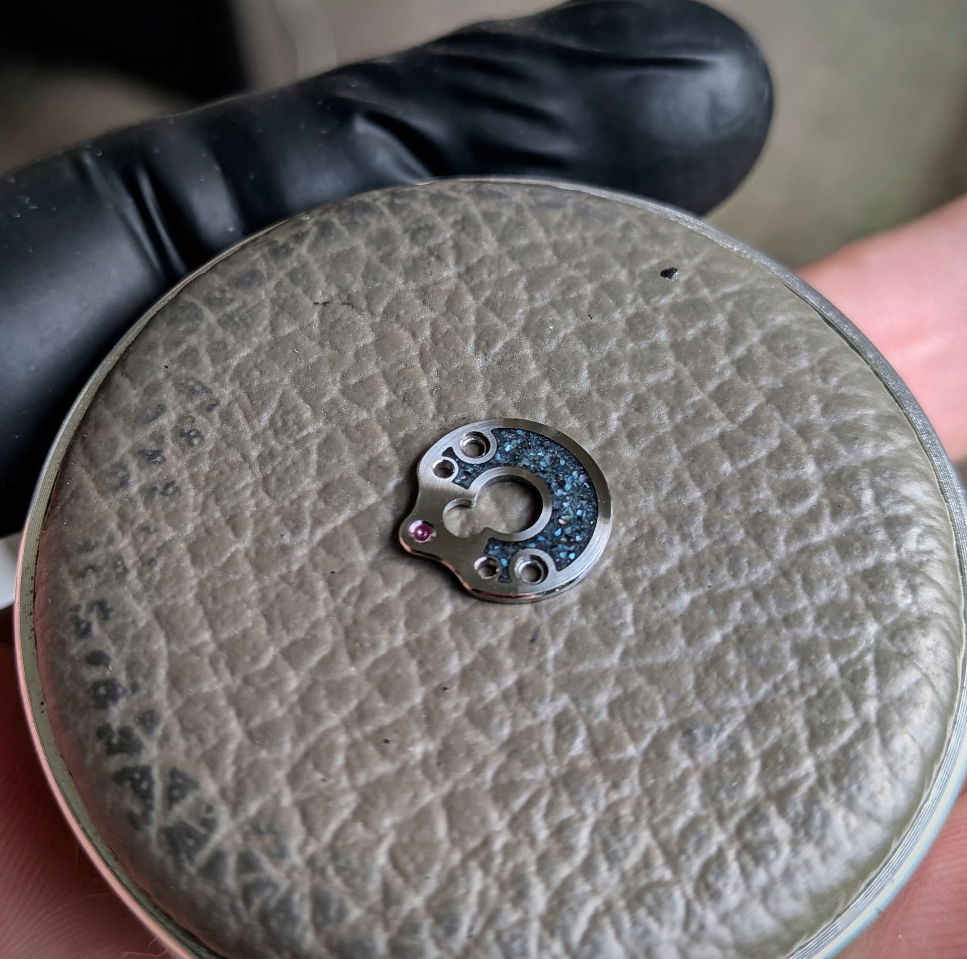 Bedankt!! ik heb hier meerdere kleuren mother of pearl voor gekocht, deze heb ik gecrushed en gefilterd zodat ik dezelfde afmeting flakes heb. Vervolgens heb ik deze in een combinatie met epoxy aangebracht op het uurwerk (en dan de kleuren gebruikt om een verloop van licht naar donker te krijgen)