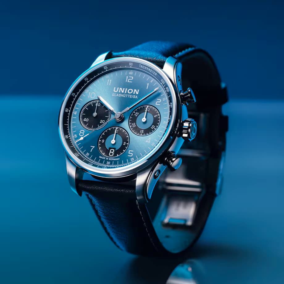 Er is een blauwe 40mm Belisar. Nu ben ik geen fan van Union, maar deze is best te pruimen, ook al is hij een milimeter dikker dan de Glassbox, bijvoorbeeld, en is de kast meer slab-sided omdat het glas platter is.