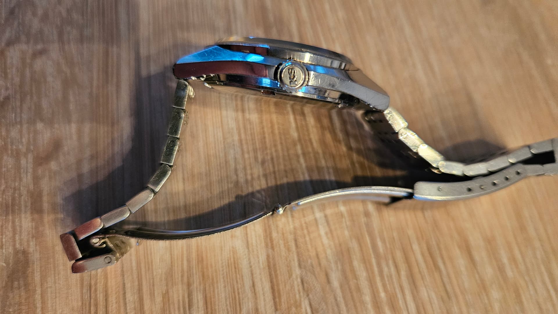 Conditie (krassen, werking etc): Vintage conditie, oftewel met krassen. Het horloge loopt en het datum snelverzet werkt (zwak punt van dit uurwerk).