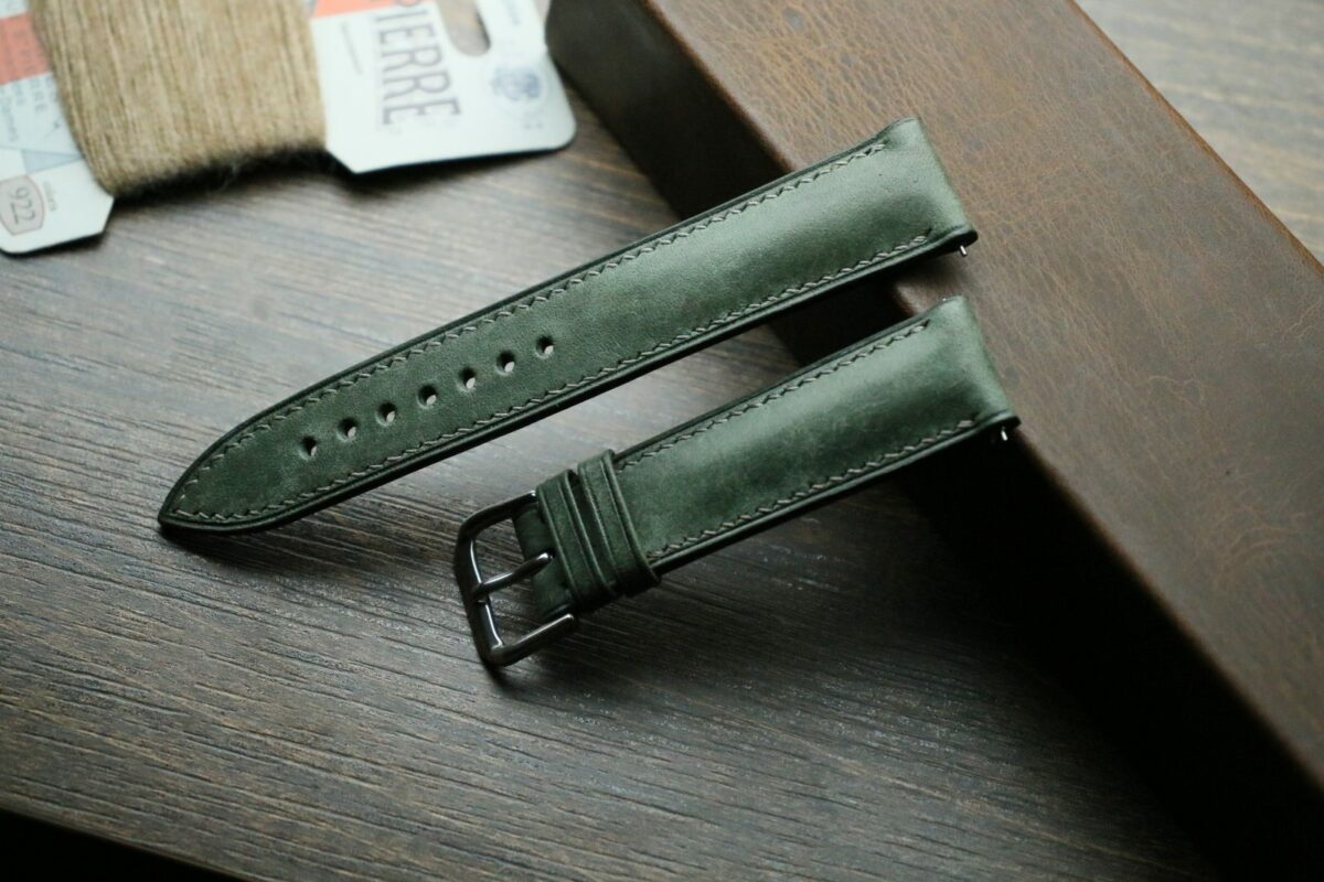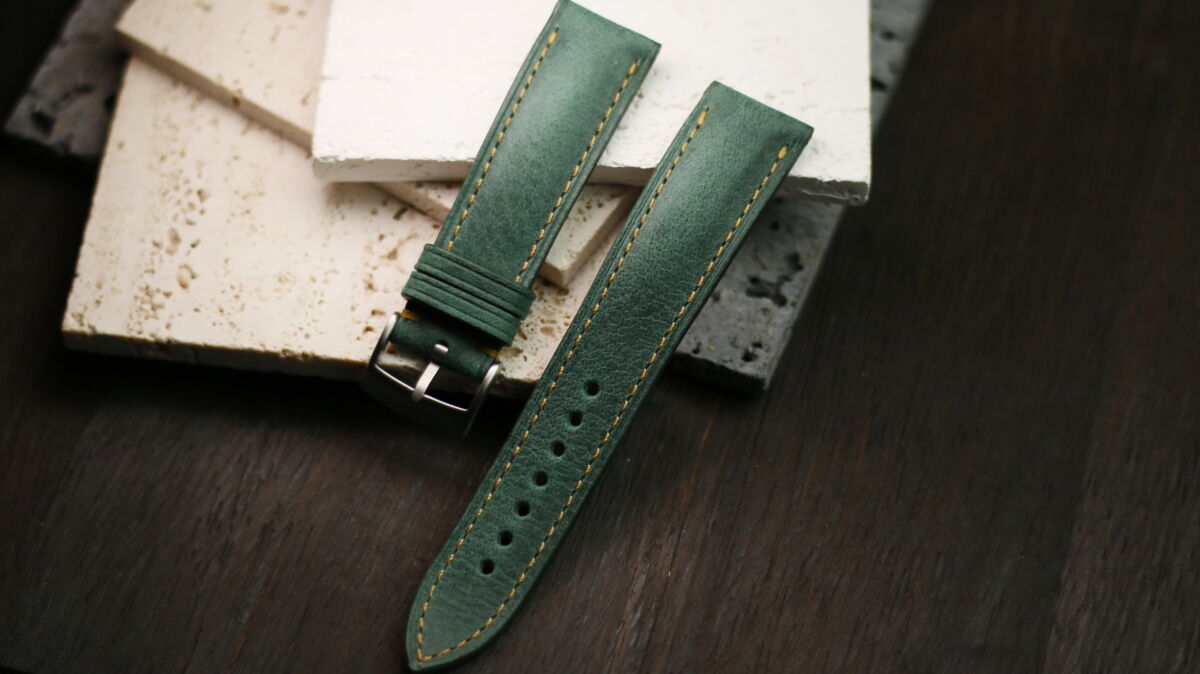 Hij is vrij helder groen. Met een ander horloge wat ik heb, met een groene bezel, heb ik een beetje hetzelfde issue. Komt overigens bij dat ik de stalen band gewoon erg mooi vind, dus er hóeft niet iets anders op, maar afwisselen is wel leuk.