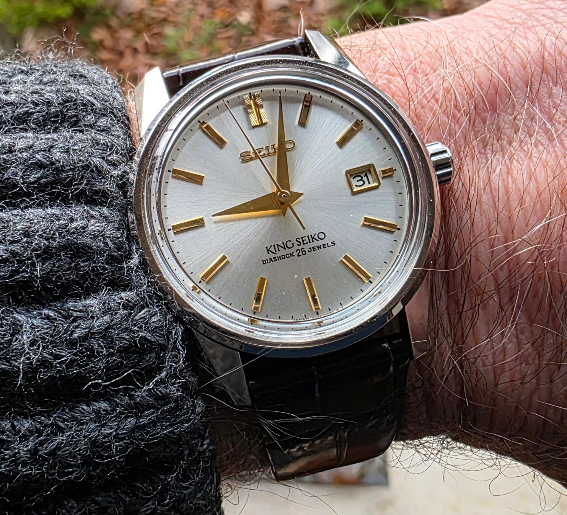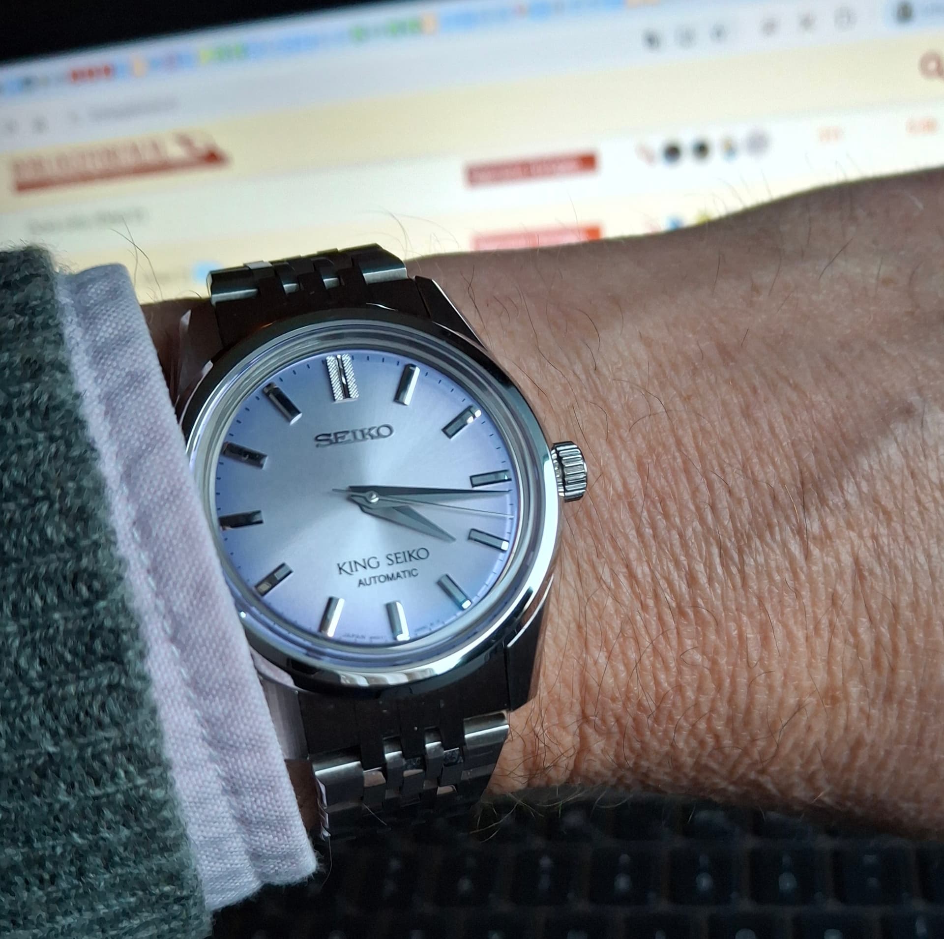 Bij de etalage van Morawitz in Düsseldorf. De King Seiko Vanac op de achtergrond even gepast, maar toch best wel een flink brok staal…