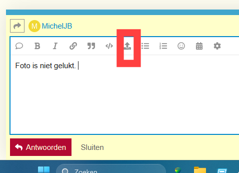 Foto is niet gelukt. Die kun je toevoegen door op het pijltje te klikken als je een post opstelt, zie hierna.