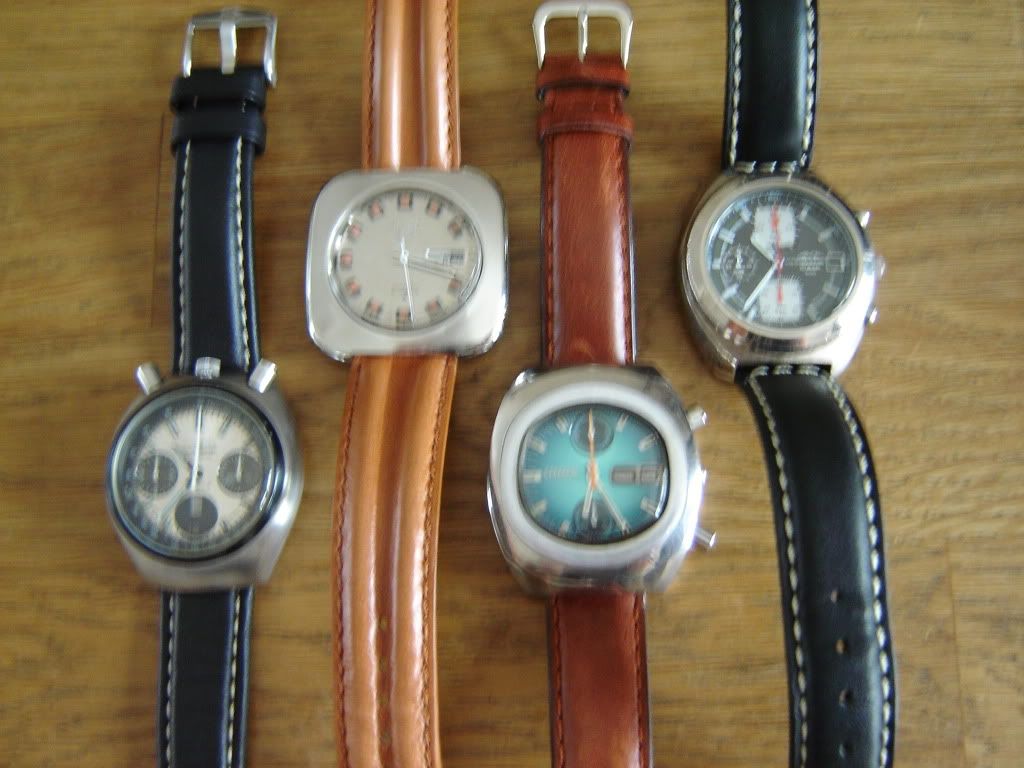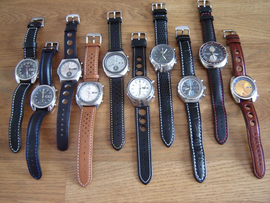 gave verzameling! En ik heb nog een vintage Seiko 6139-8002 chrono waar ik niet zo tevreden met de stalen band van ben (helaas niet de originele, die is niet te krijgen), die ga ik na het zien van de foto’s ook op leer proberen. Nadeel is dat die chrono geen zichtbare lugs heeft en dan ben ik bang dat het bandje wat ielig wegvalt.