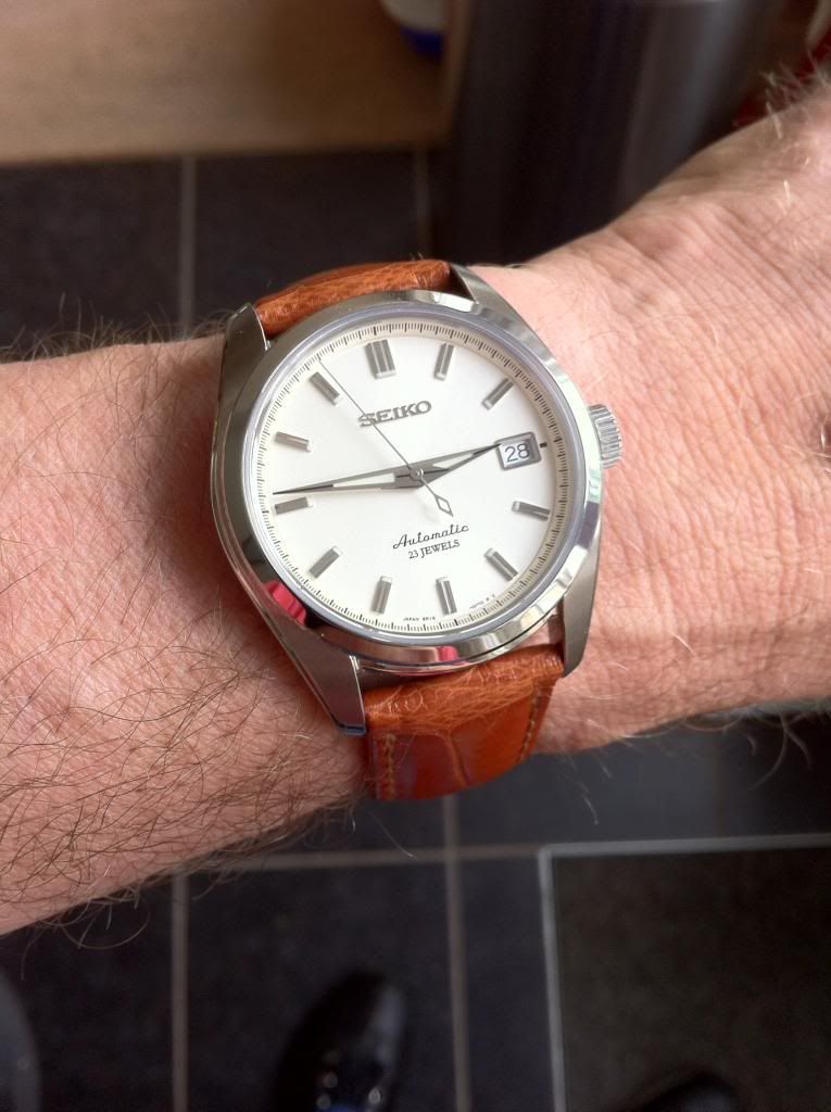 Alligator, precies wat ik zocht, ook qua kleur past hij m.i. prima bij de off-white dial van de SARB.