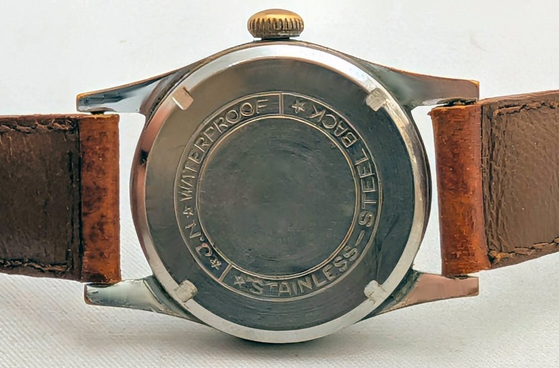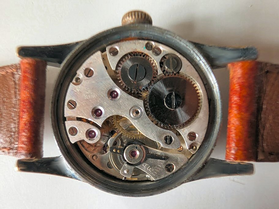 Ik kan er echter niet achter komen welk kaliber uurwerk er in zit. Mogelijk staat er iets op de platine onder de wijzerplaat, maar ik wil geen goed lopend horloge uit elkaar halen om de platine aan de voorkant te ontbloten, zeker niet bij deze kleine dame. De gebruikelijke bronnen op het web maken me niet wijzer en de A.I. hulpjes komen met baarlijke nonsens over Omega en Rolex Marconi. Dat is het zeker niet! Rannft, 17jewels, The Watch Movement Archive en Emmywatch laten het ook afweten en ook de PDF versie van de Paulson catalogue, die ik een keer van @wbcoupe ten geschenke kreeg, geeft geen sjoege.