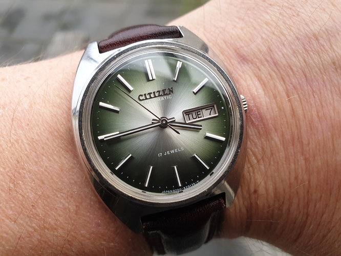 Groen op groen. Ik ben er niet kapot van. Bandje gebruik ik ook nooit eigenlijk. Snel weer een bruine er op!