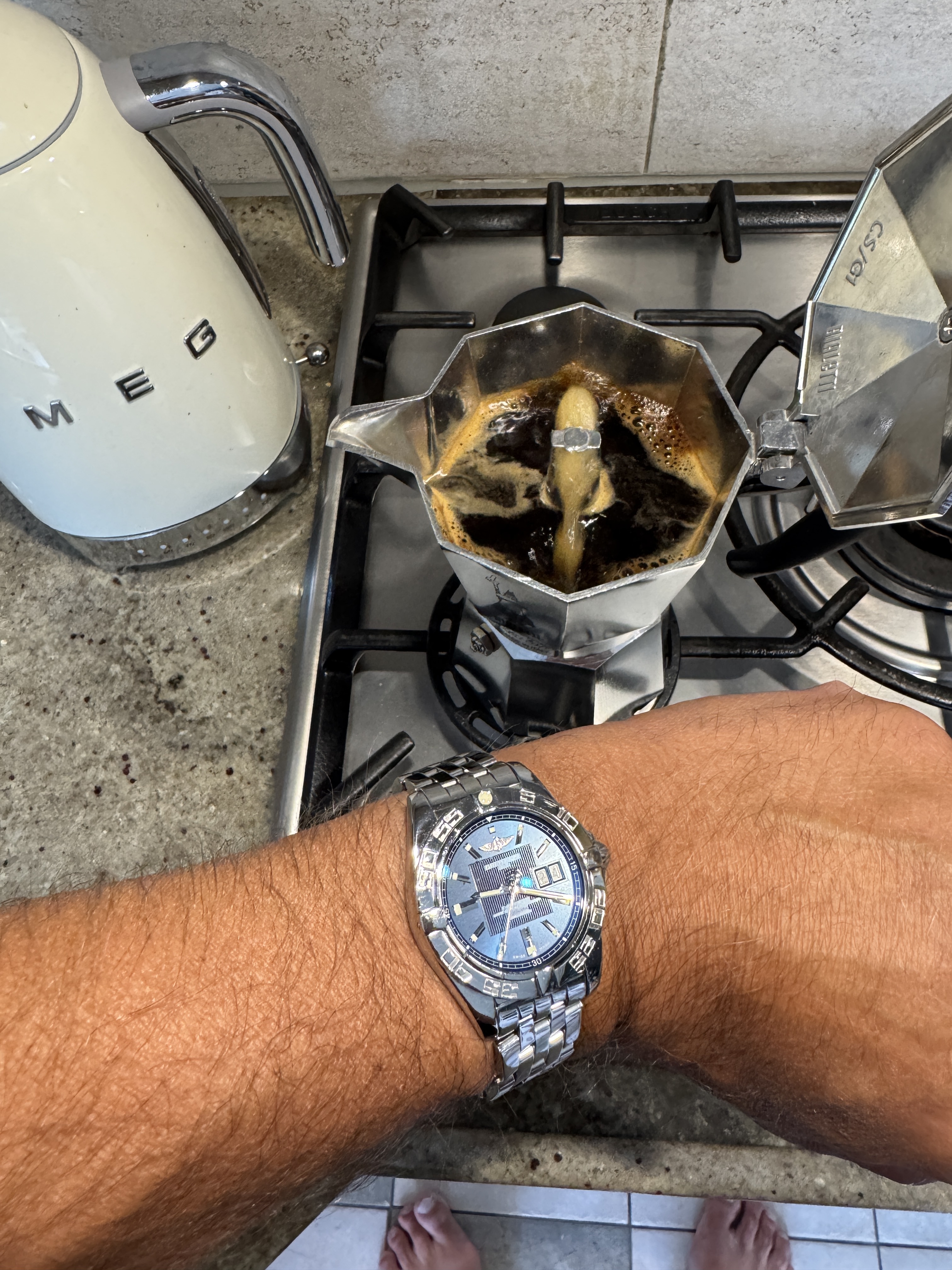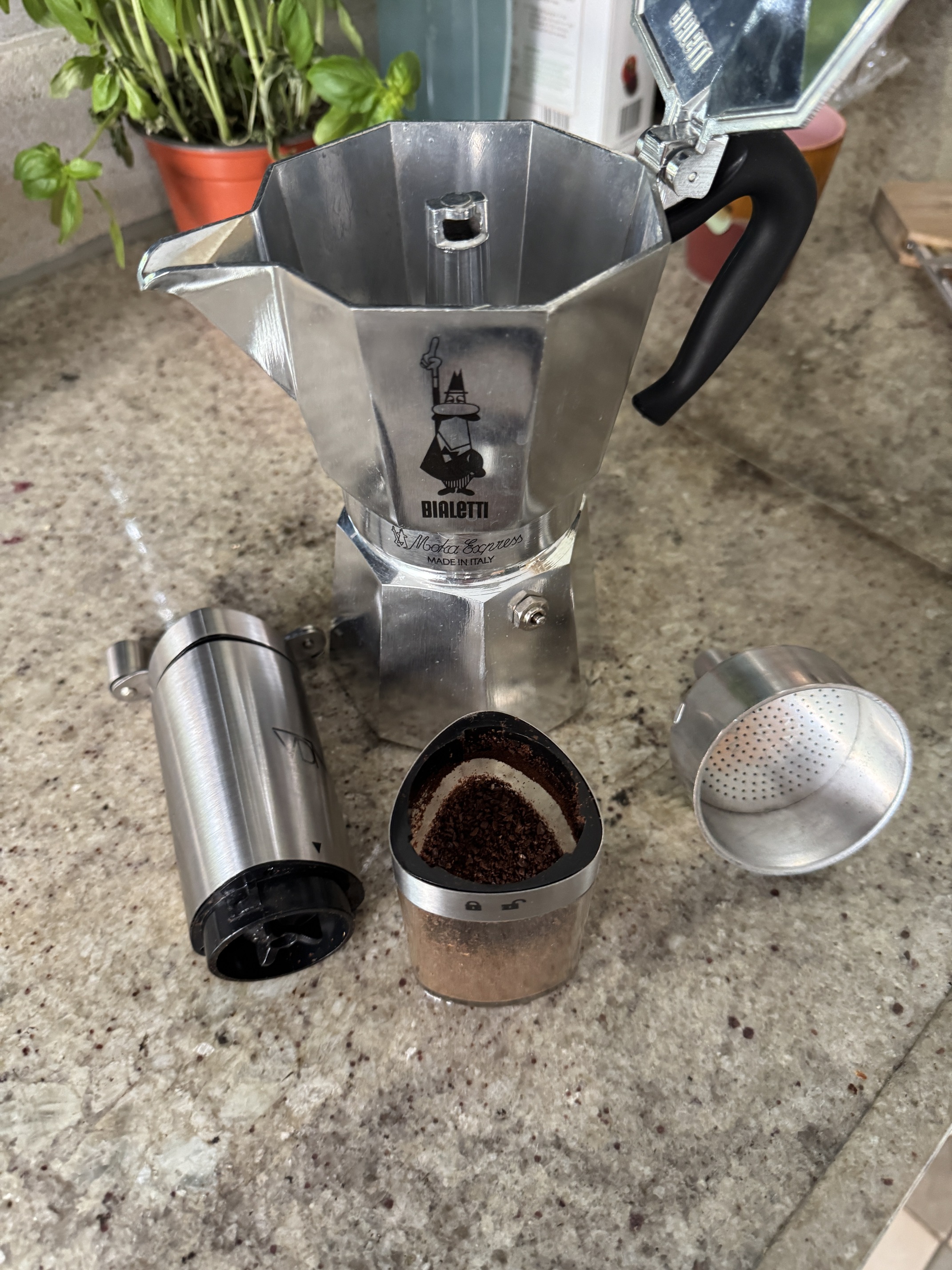 Zondag, dus weer tijd voor mijn van de vakantie overgehouden koffiezetgewoonte. Het Italiaanse espressopotje/moka pot.