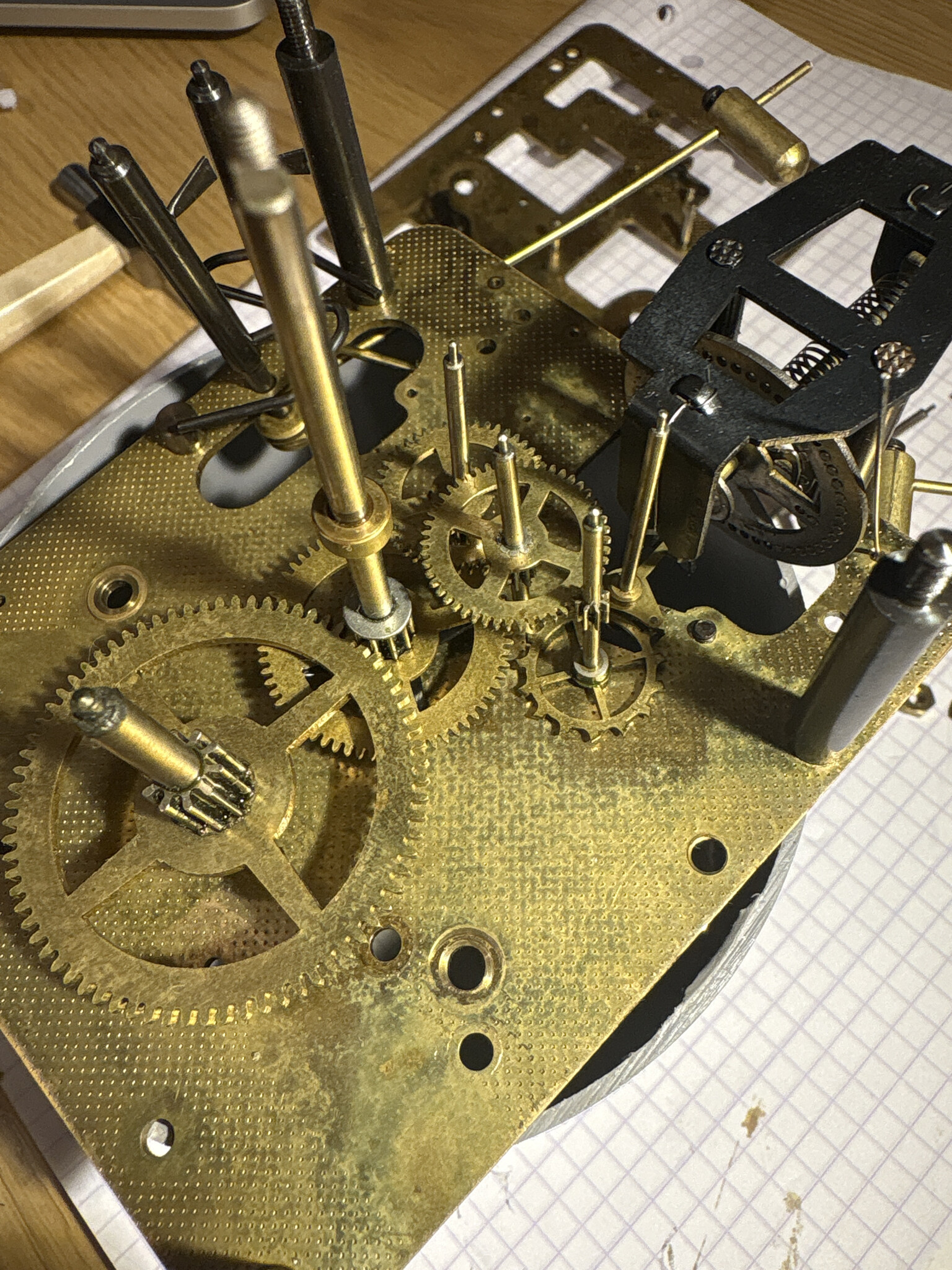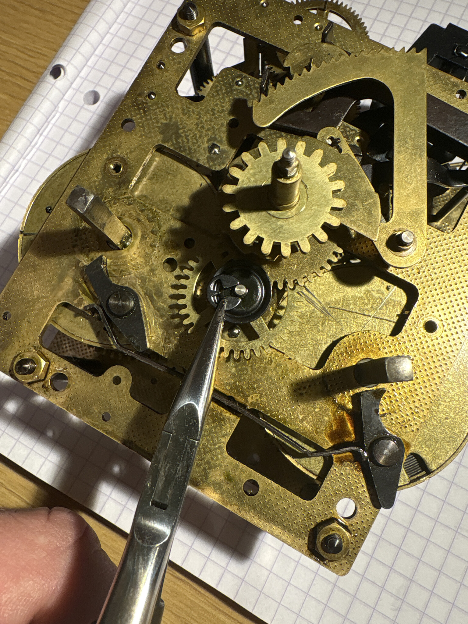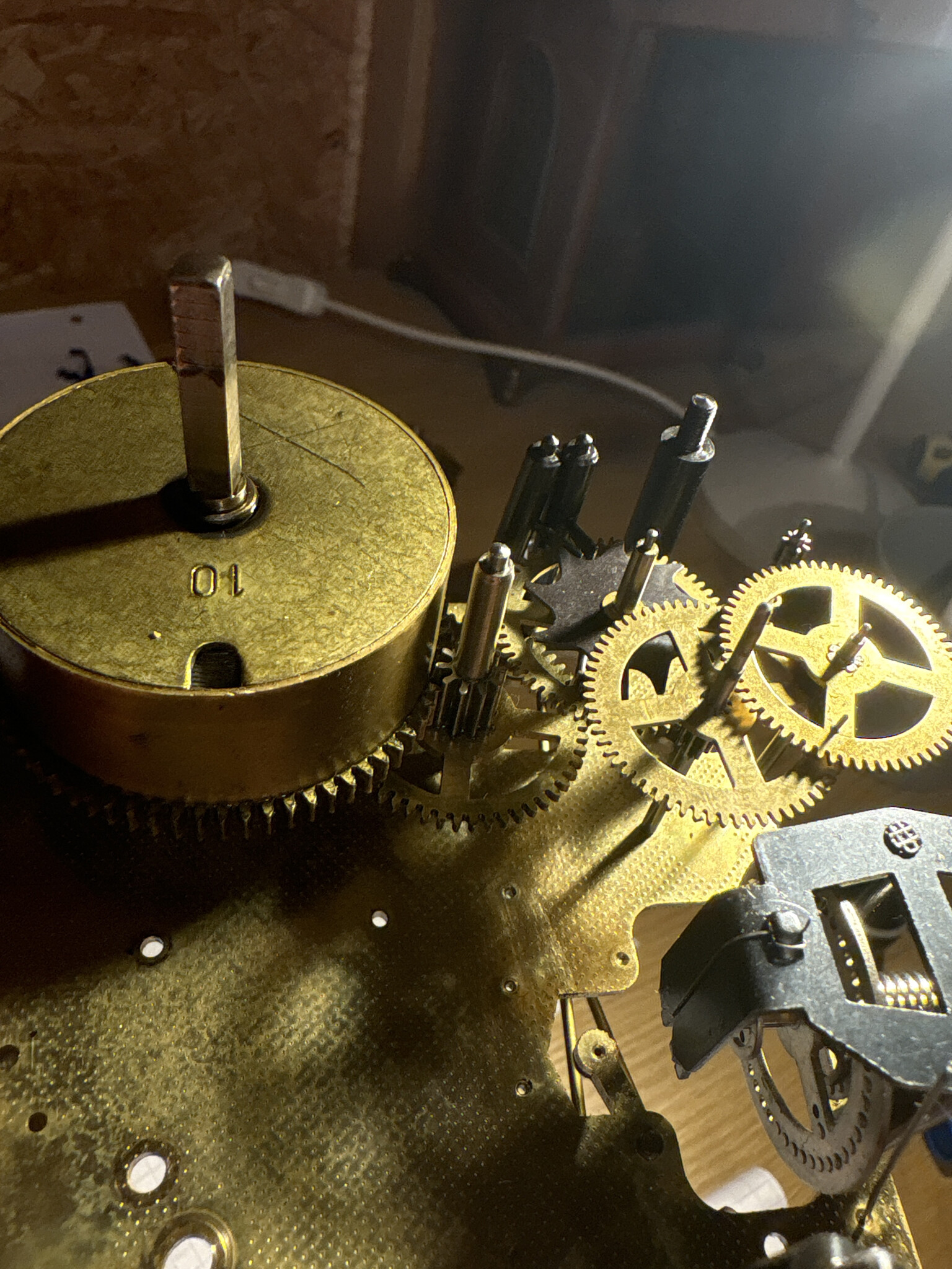Mooi werk! Die Hermle uurwerken kunnen inderdaad goed slijten. Bij de klok van mijn Oma was de veertrommel van het uurwerk zo versleten dat de trommel tegen de platine aan kwam.