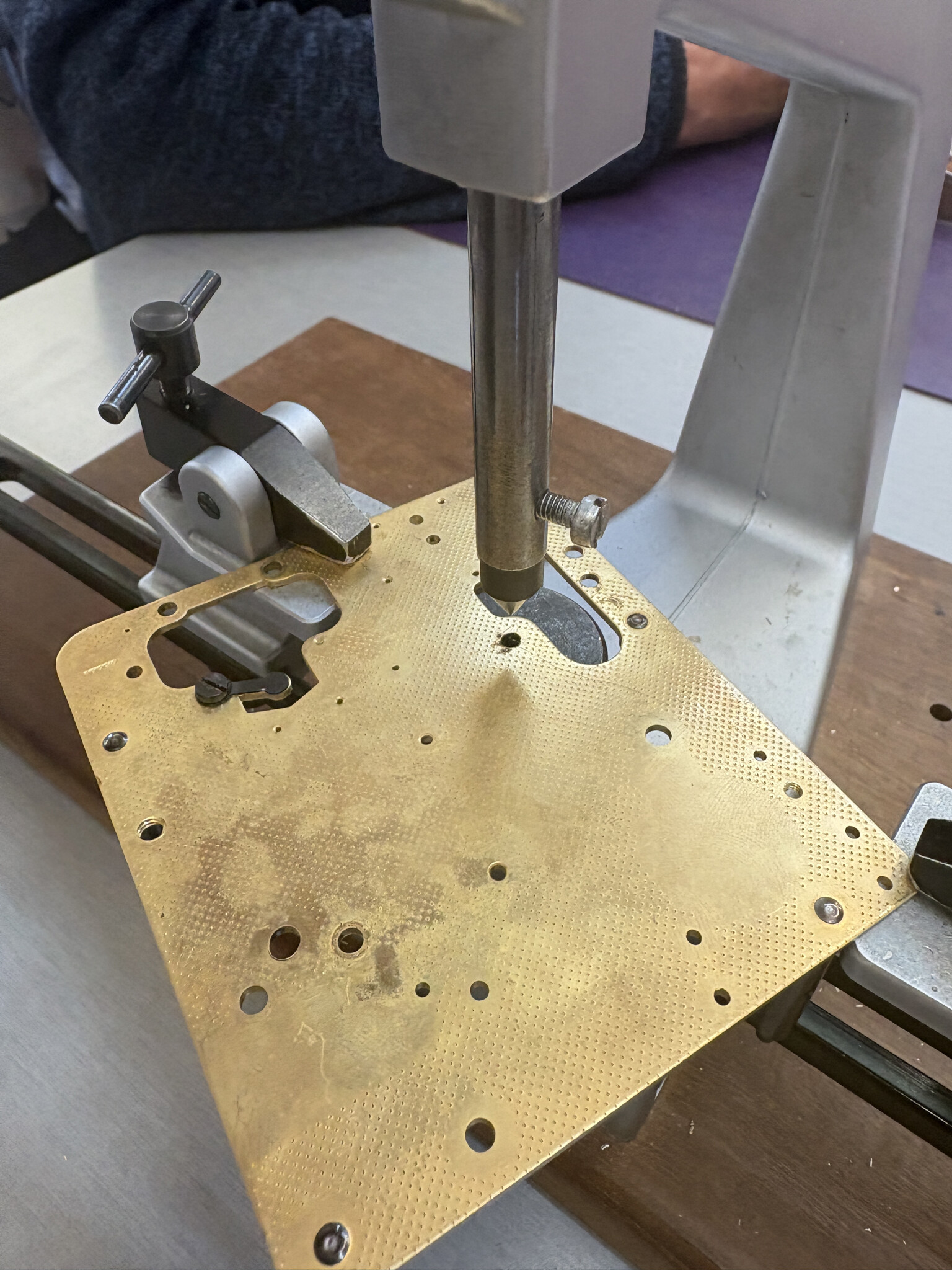 Wijzerplaat zat vast met 4 borgpinnen , deze verwijderd en de wijzerplaat losgemaakt.