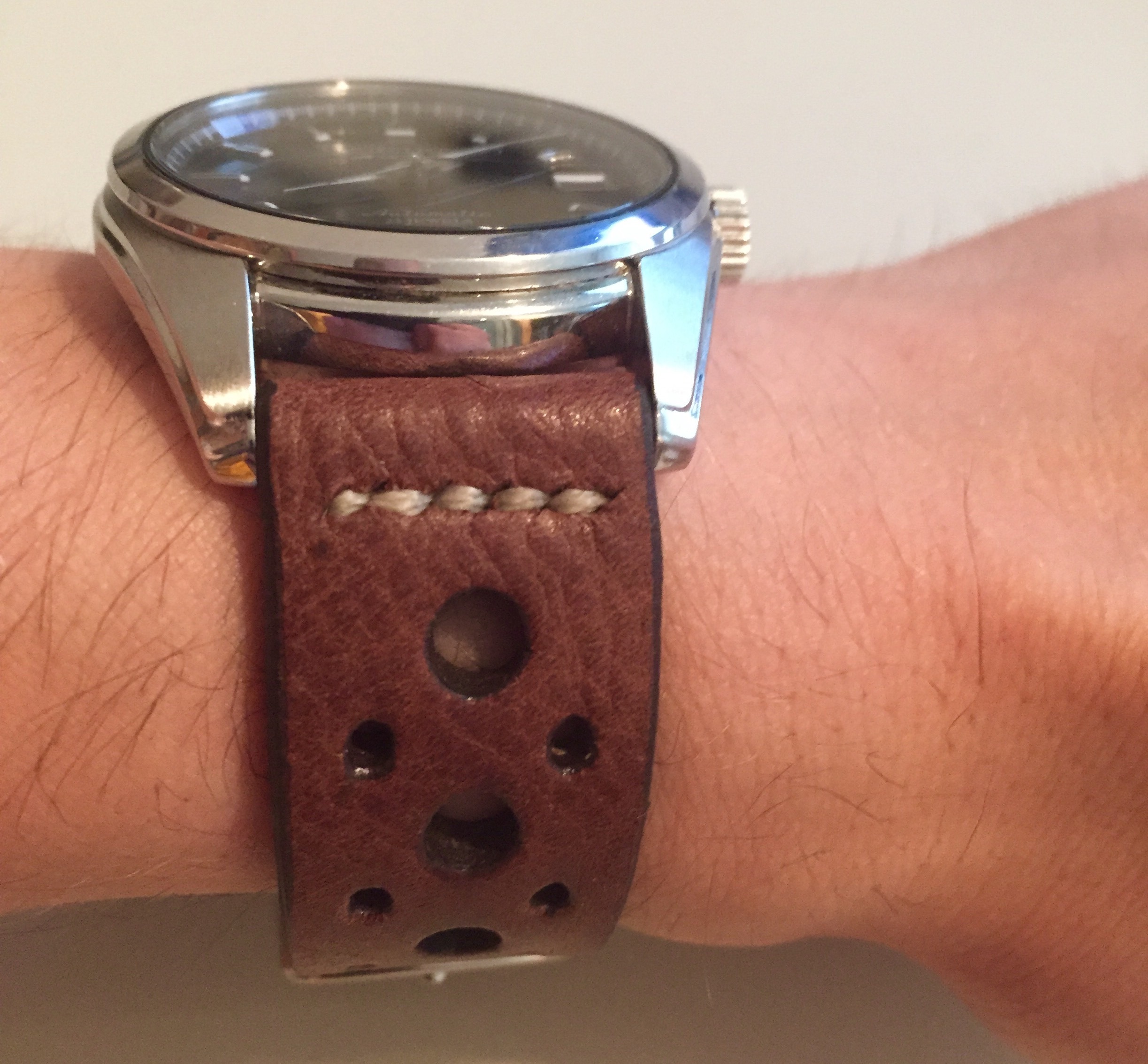 Na via dit forum een Seiko Sarb033 op een stalen band gekocht te hebben wou ik er graag een leren band bij. Normaal staat leer me een beetje tegen want door m’n smalle polsen blijft er altijd een heel stuk materiaal onbenut.