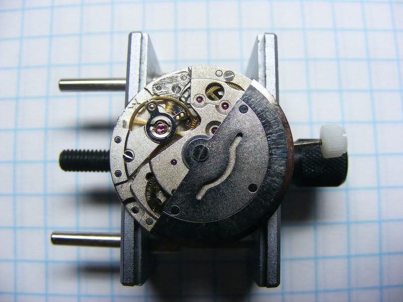 Overigens zijn er ook uurwerken waar je niet op een punt moet drukken, maar een schroefje enkele slagen los moet draaien.