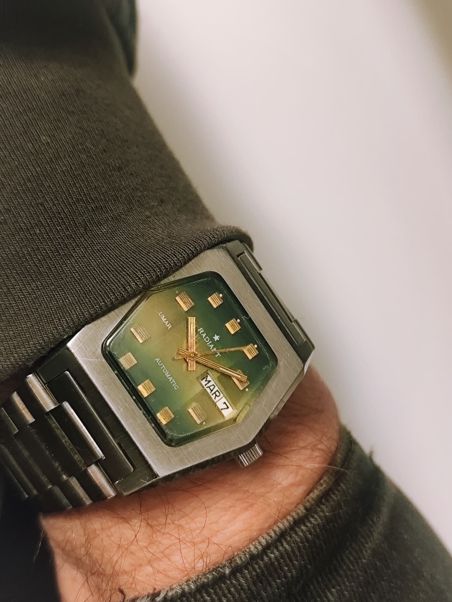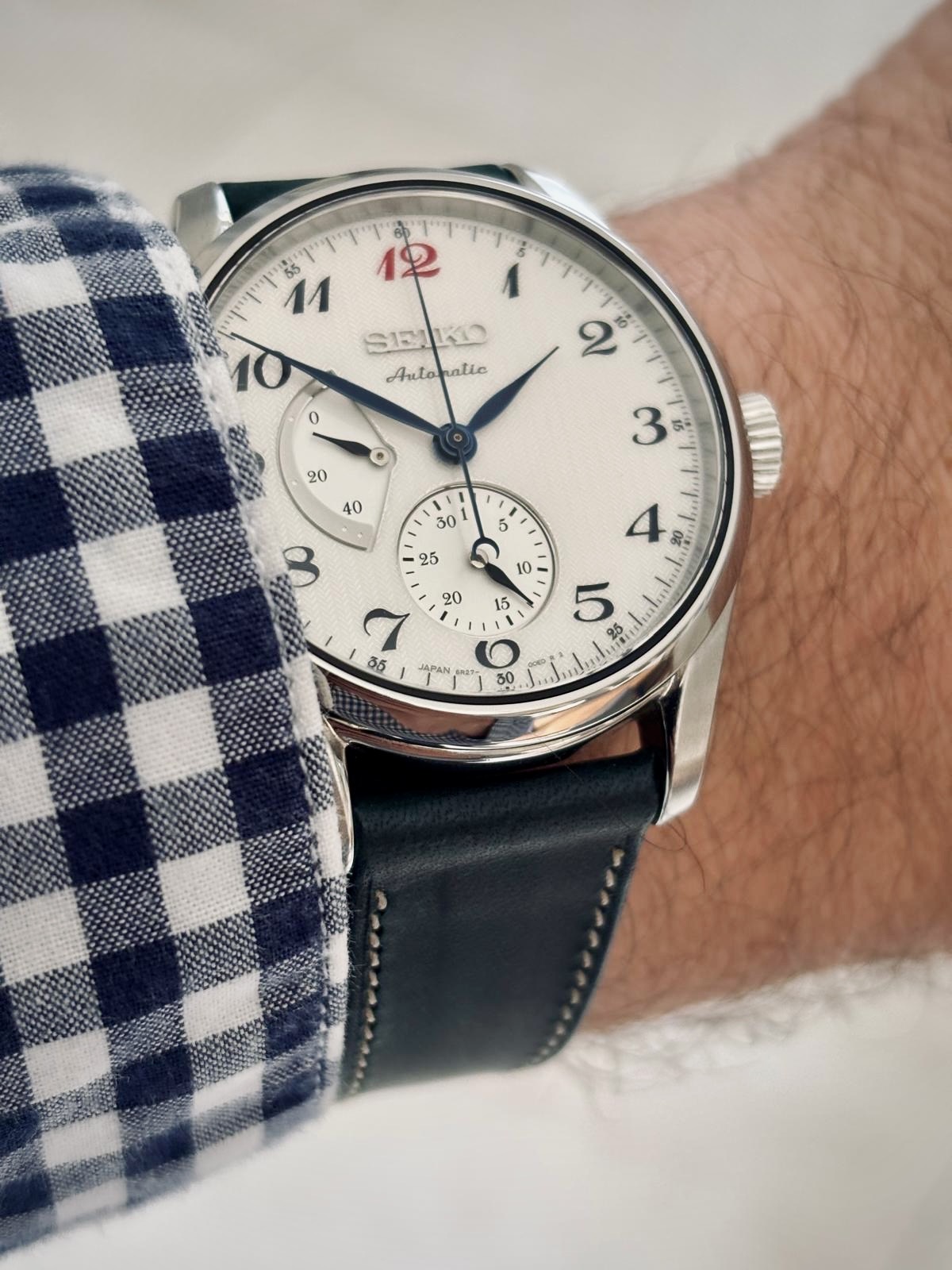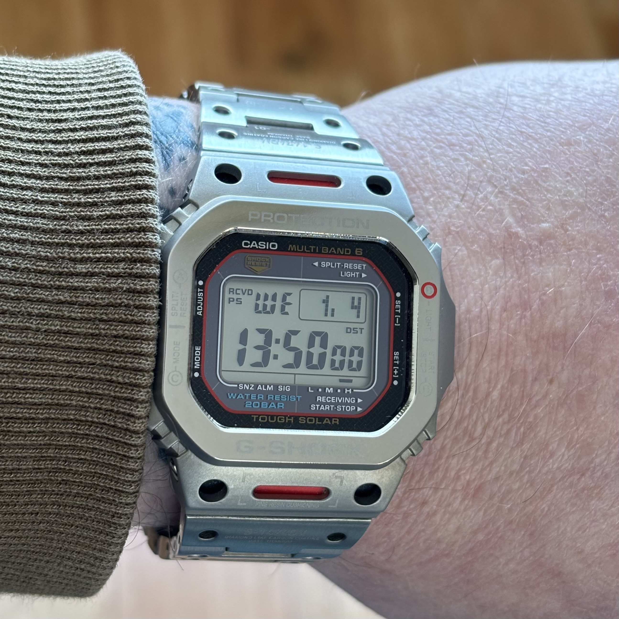 Nee, adviesprijs 7.200. Maar op dit moment kun je, als er nog een is, voor een heel goede prijs een met de lederen of ‘oude’ stalen band krijgen, bij