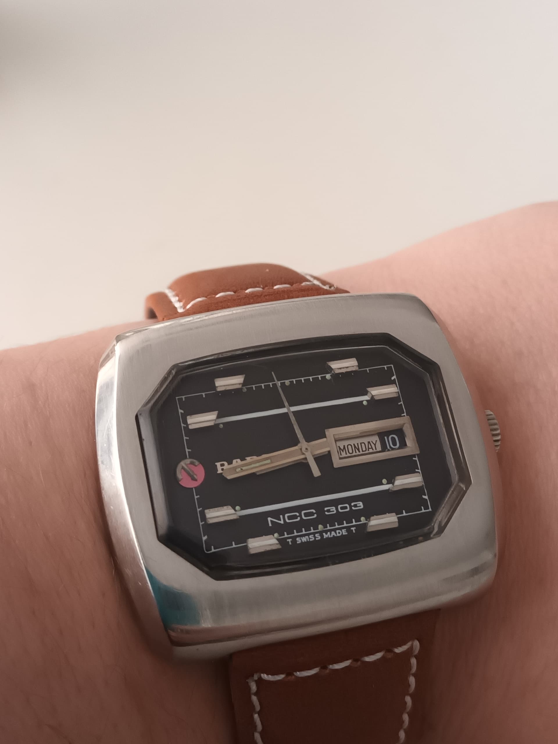 In de vintage 1950-1965 zijn dit mijn grootste. De vierkante is 31 op 31 en echt dat is supergroot, letterlijk. De ronde is 33mm excl. Maar door de eerder slanke bezel en grote plaat draagt ie groot. Ergens ligt nog een 35mm stalen longines uit de fifties maar die vind ik zodadelijk niet.