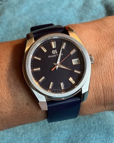 Ik heb mijn sbgv247 weer eens op een blauwe rubberband van Hirsch gezet. Past hem goed vind ik. De rubber/siliconen band van Grand Seiko zelf die erbij zit vind ik maar zozo, en houd ik dan liever ongedragen.