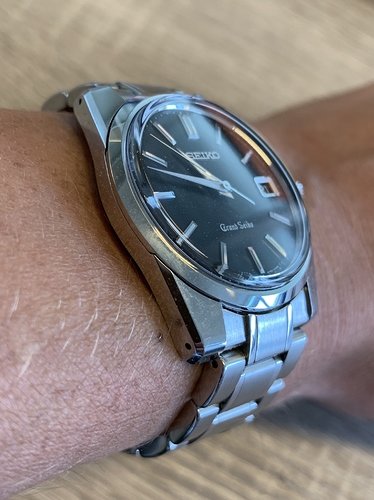 Even afgezien van de prijs natuurlijk… Op Marktplaats biedt iemand ook wel vintage Grand Seiko’s aan, maar daar is de scherpte ook altijd af. Dan ben ik gelijk al afgehaakt. Liever ongepoetst en scherp met een paar krasjes, dan afgeronde lijnen.