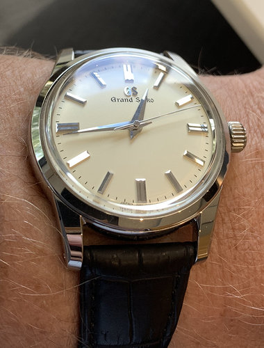Ah de SBGV225! Ik heb deze ook en heb vanmiddag aan de kant van de IJssel een tijd gebiologeerd naar de blauwe dial getuurd. Wat een pracht die steeds maar van kleur veranderende blauwe gloed en wat een sunburst.