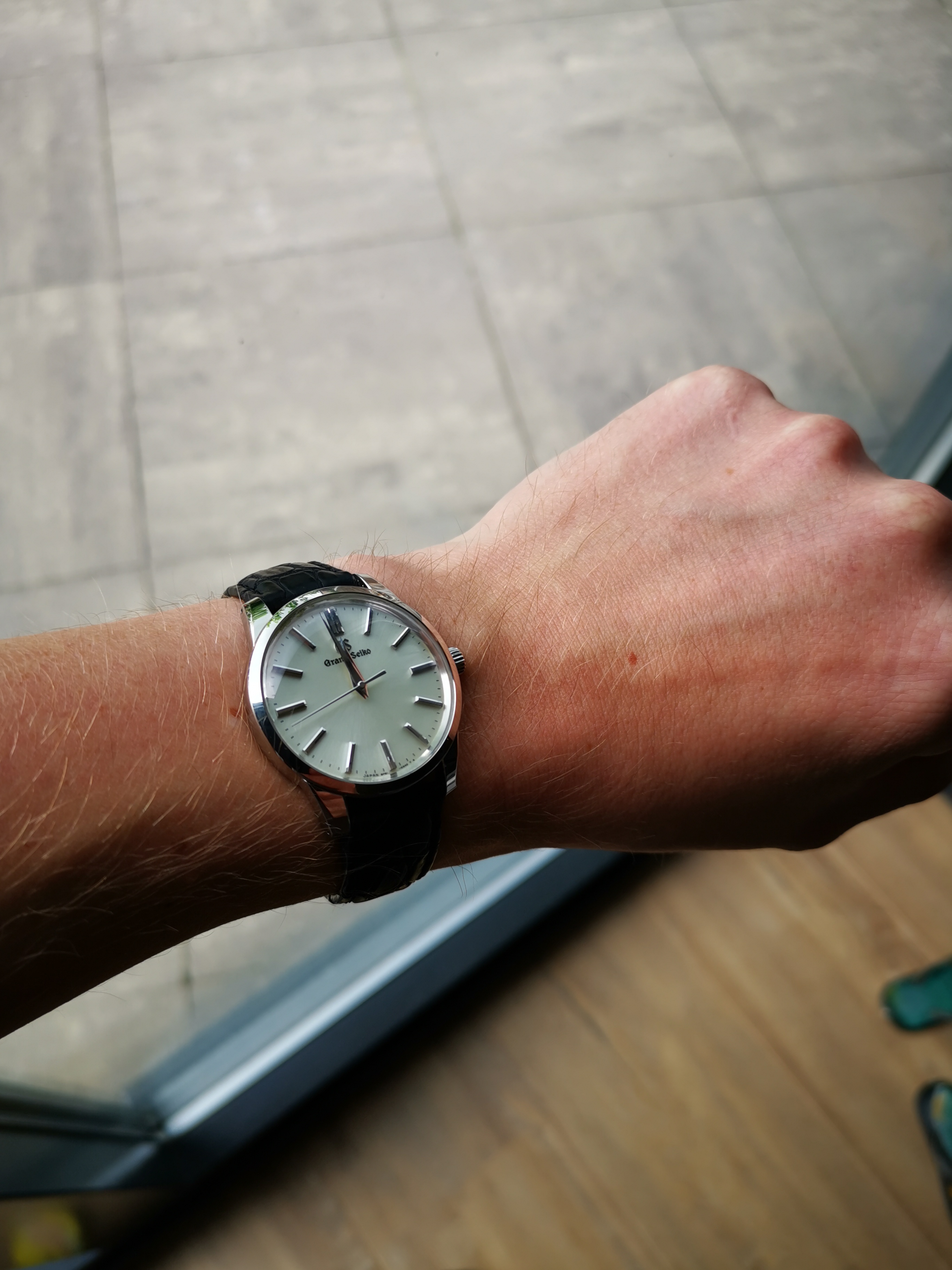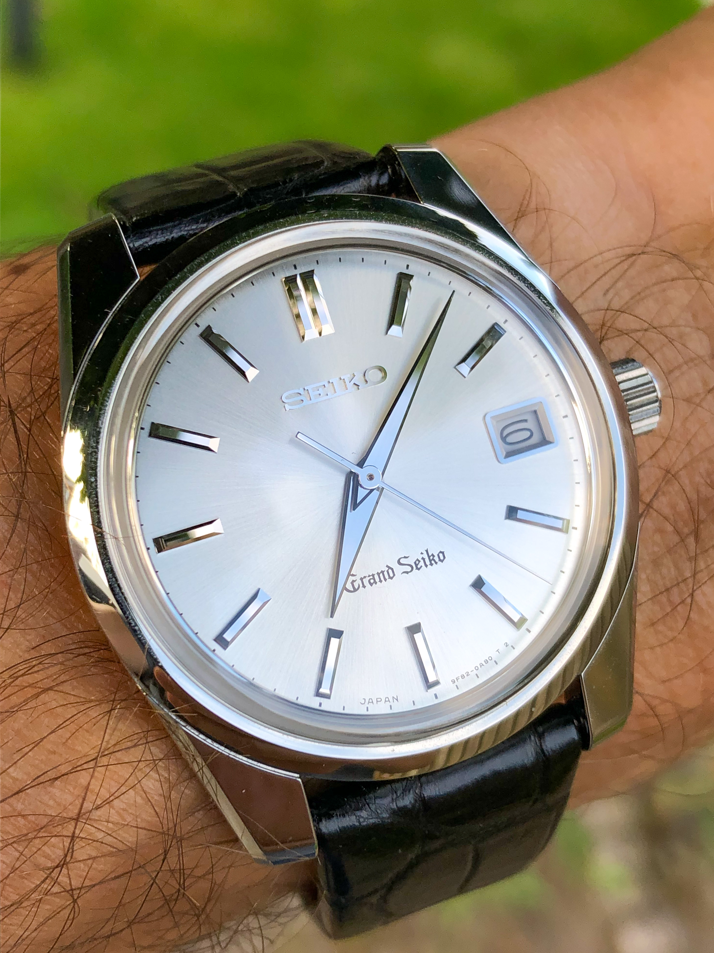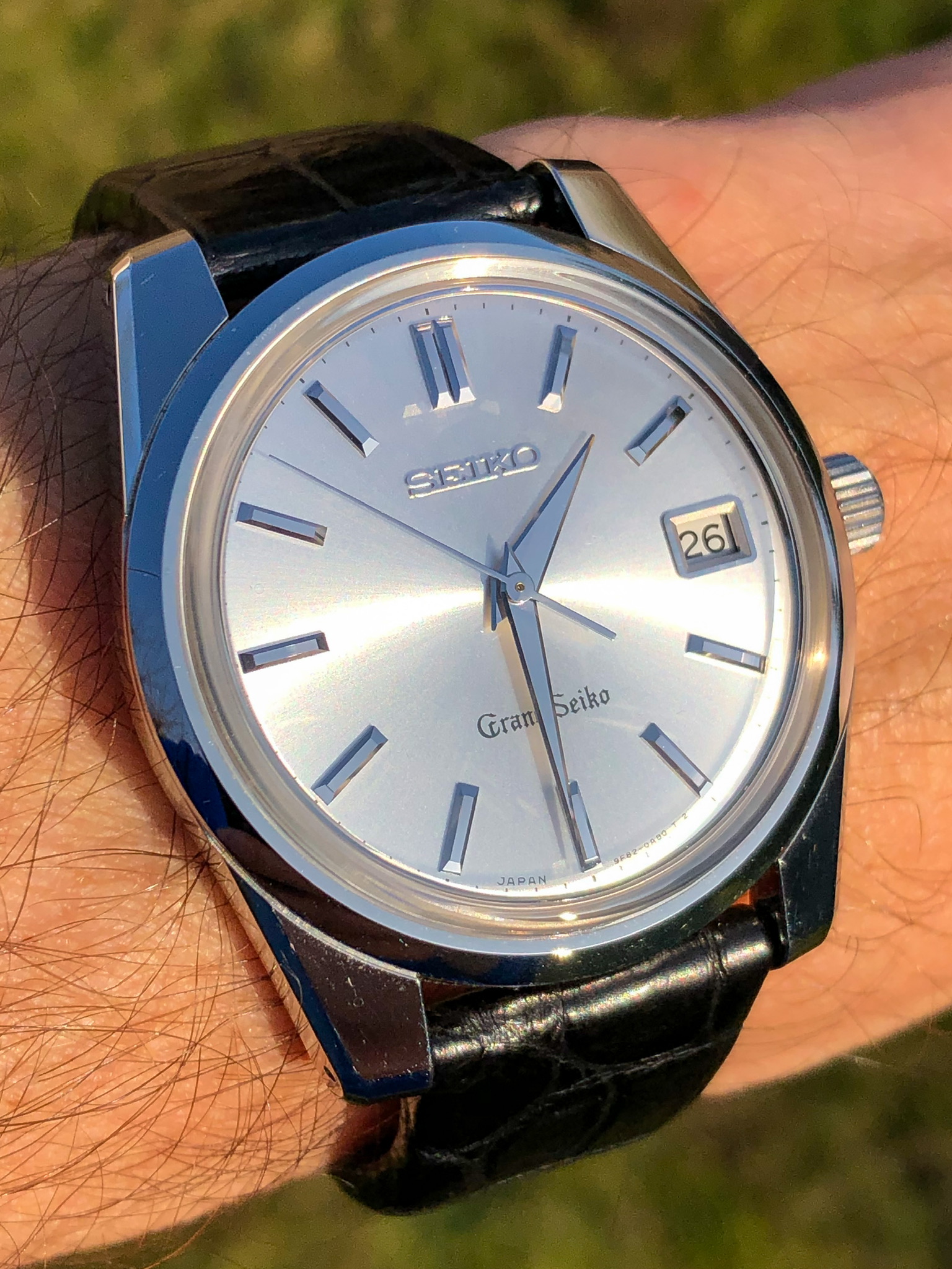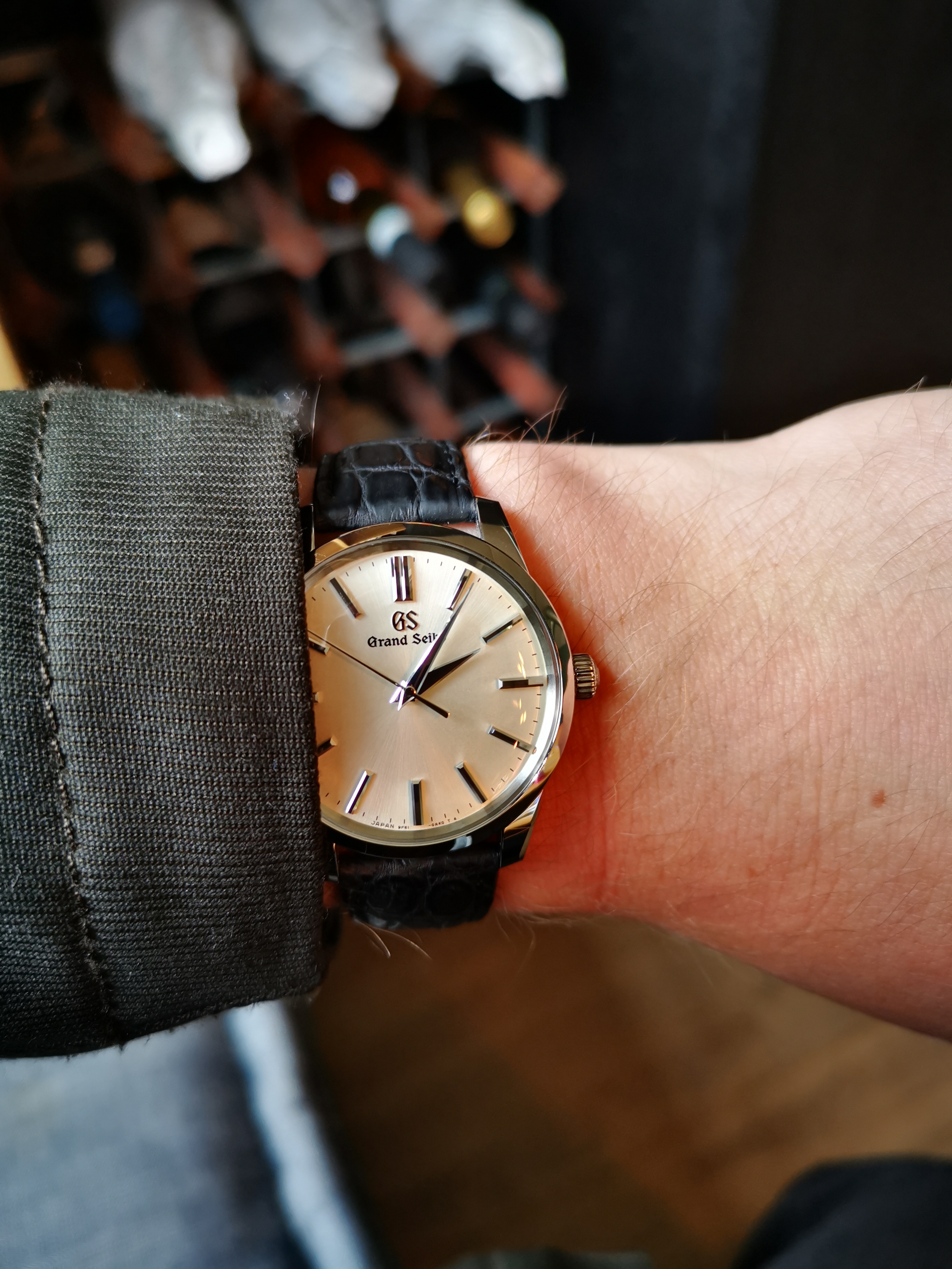 Dat zal komen omdat Grand Seiko het gebruik heeft om de wijzers op een lichte wijzerplaat te polijsten, en die op een donkere plaat te borstelen.