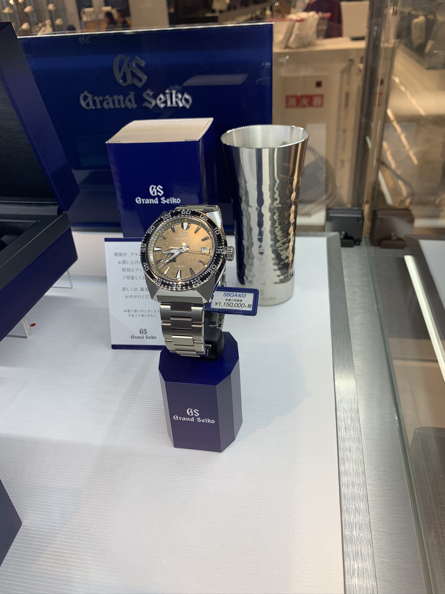 These dials are made one by one, and they have to do a polishing process first. Then they have to do a perfect mirror polish. Then they go to the sunray, internally referred to as the F17 sunray. The dial is held in the centre by a tray that spins. Through this little disk, this brush is creating the sunray pattern. This is after an ultra-thick silver plating and the aforementioned mirror polishing process. It’s not just plated with silver. There are more layers that go on top, and there’s a light gold plating that’s done as well. To recap: it’s polishing, mirror polishing, then silver plating, then silk sunray pattern one, and then you go into the gold plating, then it continues from there. It just is countless work not limited to the SBGA373, but all models utilising this sunray finish. It’s amazing that this is found in their quartz movements for starting under $3000, all the way up to the Chronograph model at $8200.