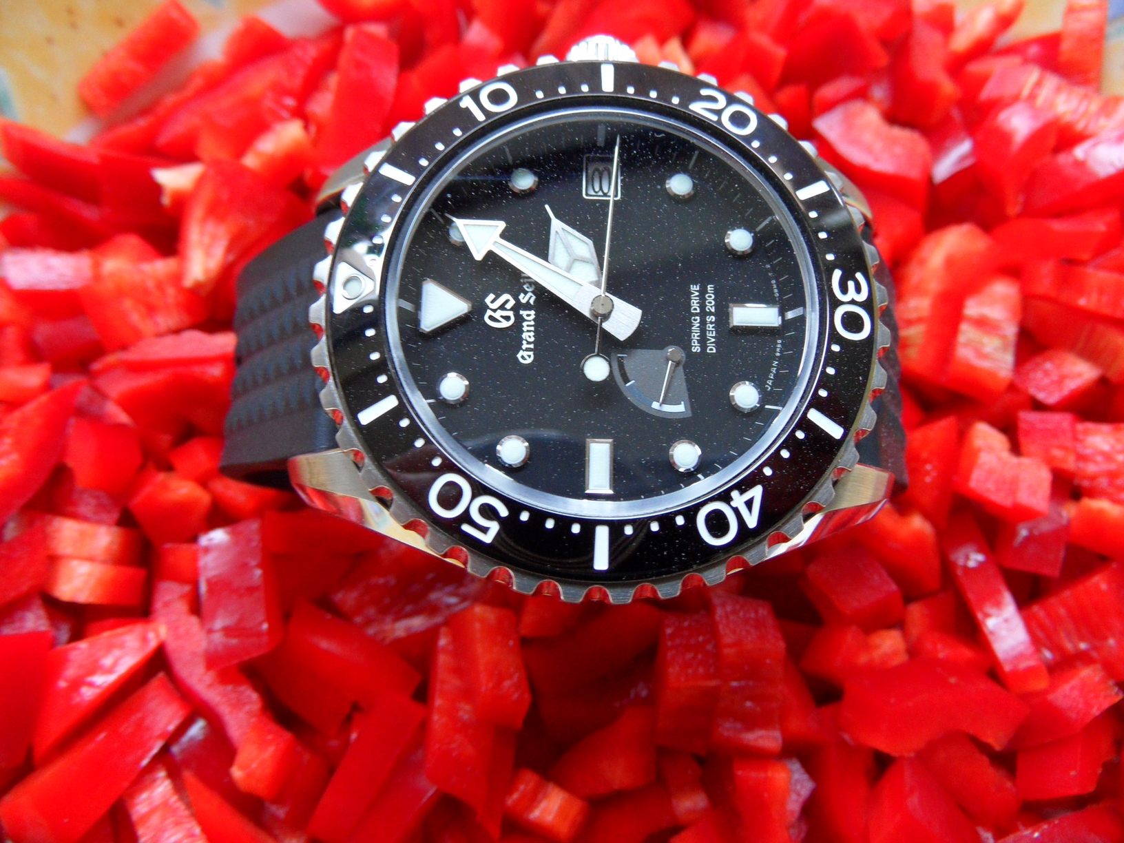 Het is een “Uncle Seiko” band. Niet de meest subtiele. Maar, na een bad in een limonade glas, overgoten met gekookt water vormt de band zich super naar de rondingen van een/de pols. “Keepers” zijn daarna eigenlijk zo goed als niet nodig.