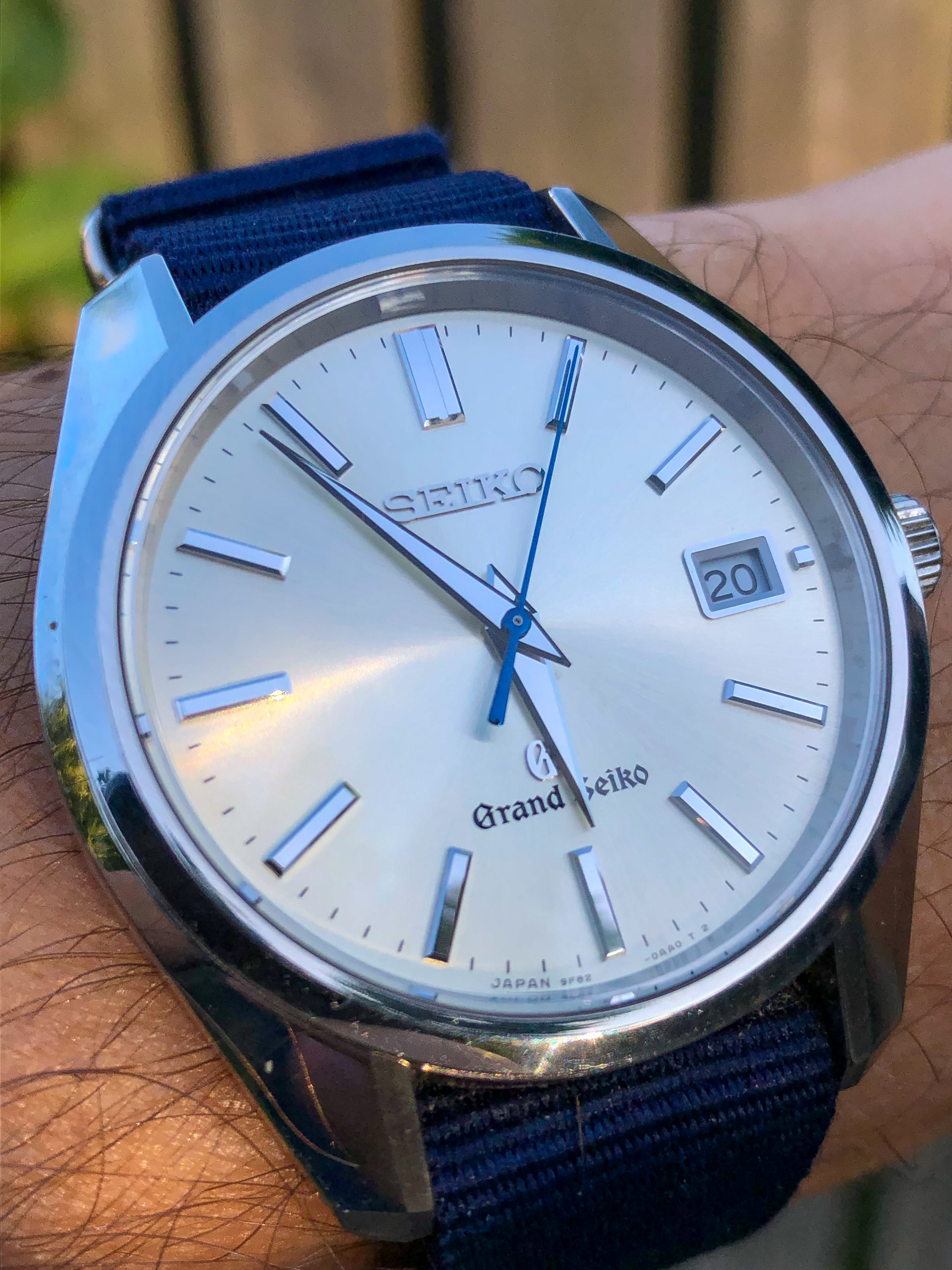 Zijaanzicht van de sbga103, zulke nette facetten. Zie bijvoorbeeld hoe de bezel aan de overgang tussen bezel en kast ook een klein naar binnen lopend facet heeft. Je ziet de tanden van de kroon erin gereflecteerd. Daar is de kast veel gedetailleerder dan de sbgv009 en sbgv011 van @El_penumbra en @koetsjh. De spring drive sbga103 is meer een interpretatie van de 57GS dan die quartz remakes die dichter bij het origineel liggen. Die hebben meer de kracht van de eenvoud.
