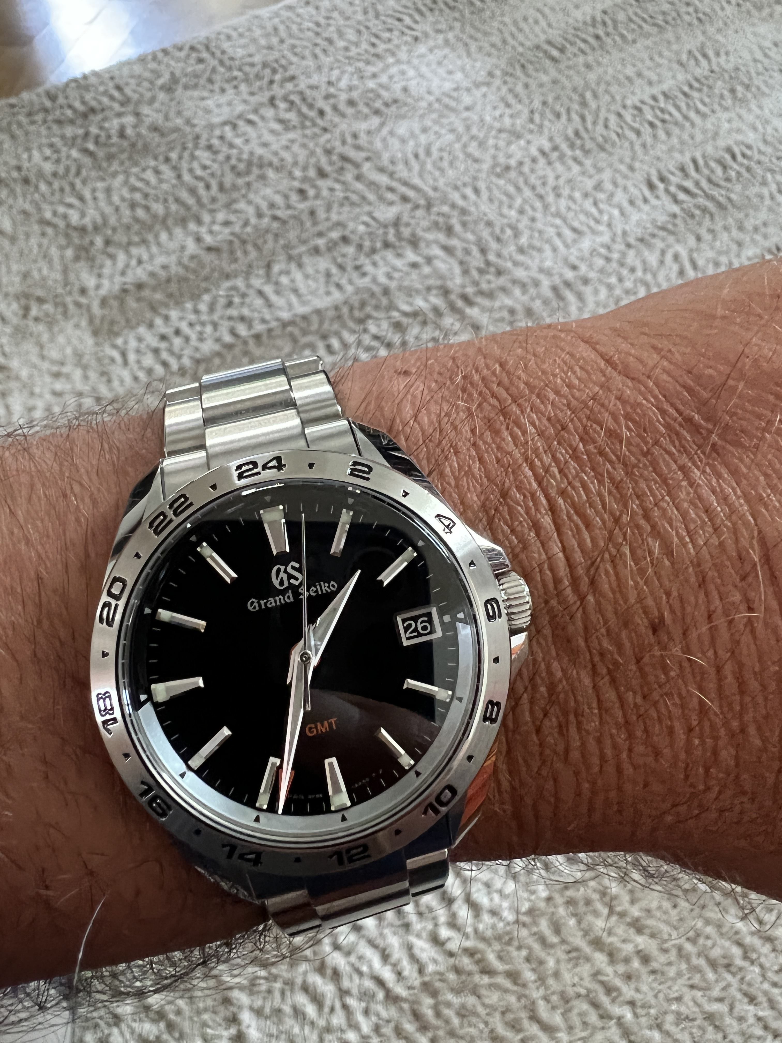 Ik heb een white birch gepast en was echt onder de indruk. Maar aan die urenwijzer kan ik nog niet wennen. De band is ook wel flink breed met 22mm. Qua uurwerk wel een fantastische stap van GS, nu die met een klassieke GS wijzerset met dopje
