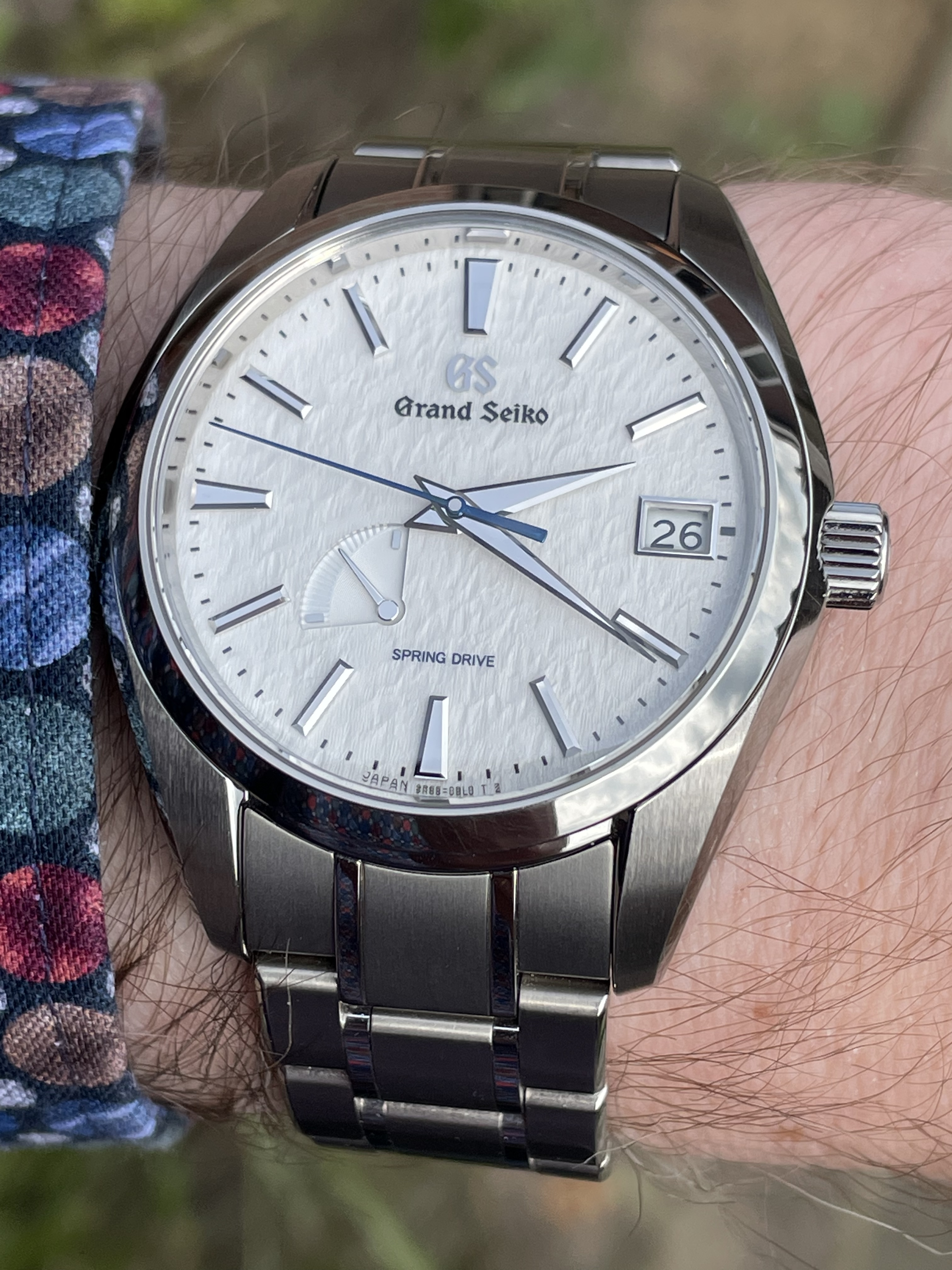 De band viel heel mooi op mijn 17,5 cm pols. Is een kwestie van wennen denk ik. Het nieuwe hi-beat uurwerk is wel heel gaaf met een nieuw echappement. Dat zie je niet vaak. Maar een 5 day SD is helemaal gaaf natuurlijk. Wel jammer dat je het glide wheel wat minder goed ziet dan in de eerdere Spring Drives.