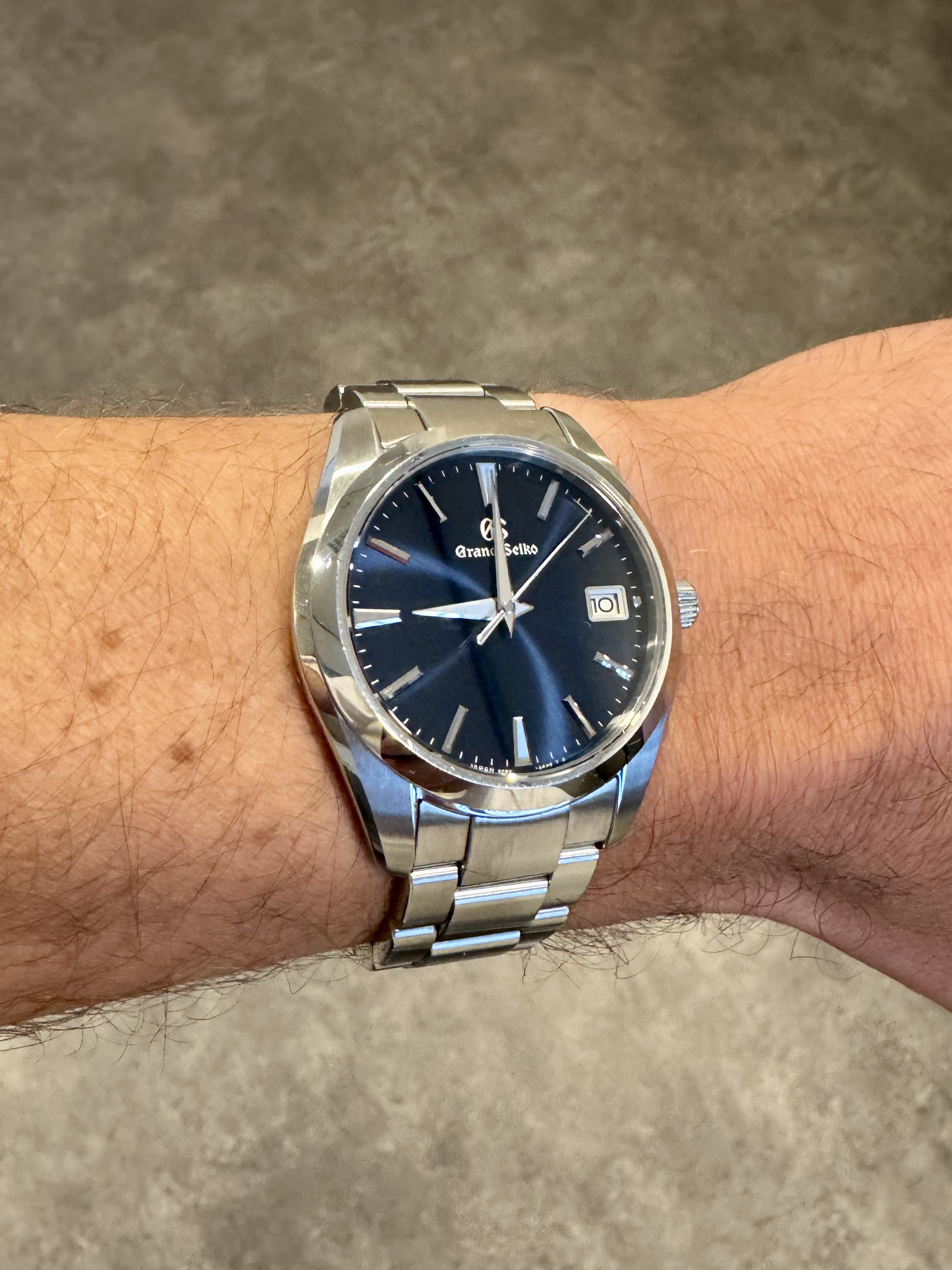 De grote mooi aan de Grand Seiko sluiting is namelijk ook dat er geen “doos” om de sluiting heen gevouwen zit, en er dus niets is wat de huid raakt, naast het scharnier, wat toch al afgeronde zijkanten heeft.