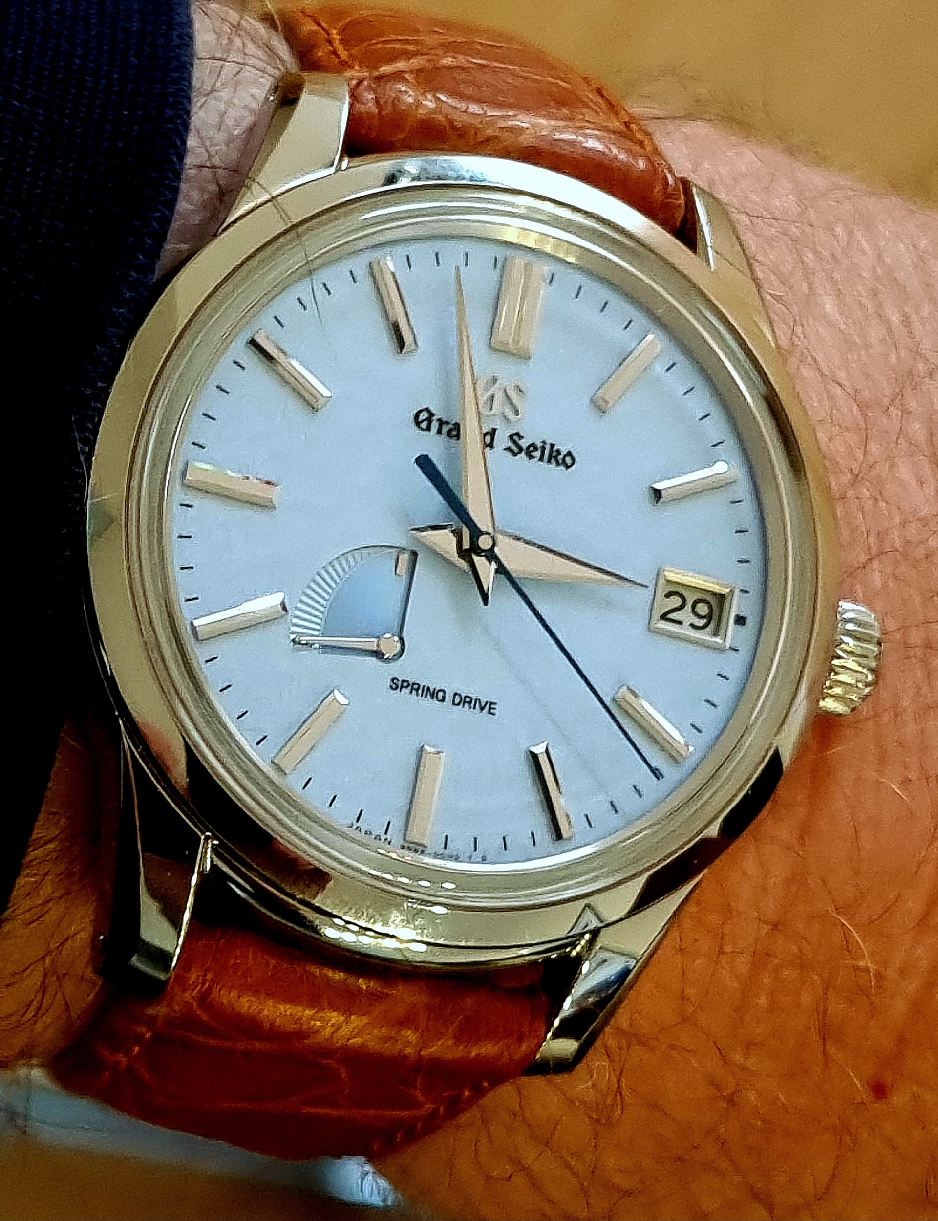 Dit is een model met echt de essentie van Grand Seiko. Lijkt bij de eerste snelle blik een beetje saai, maar is perfect afgewerkt en als je goed kijkt, zullen de scherpe vlakken van de indices en wijzers zeker opvallen.