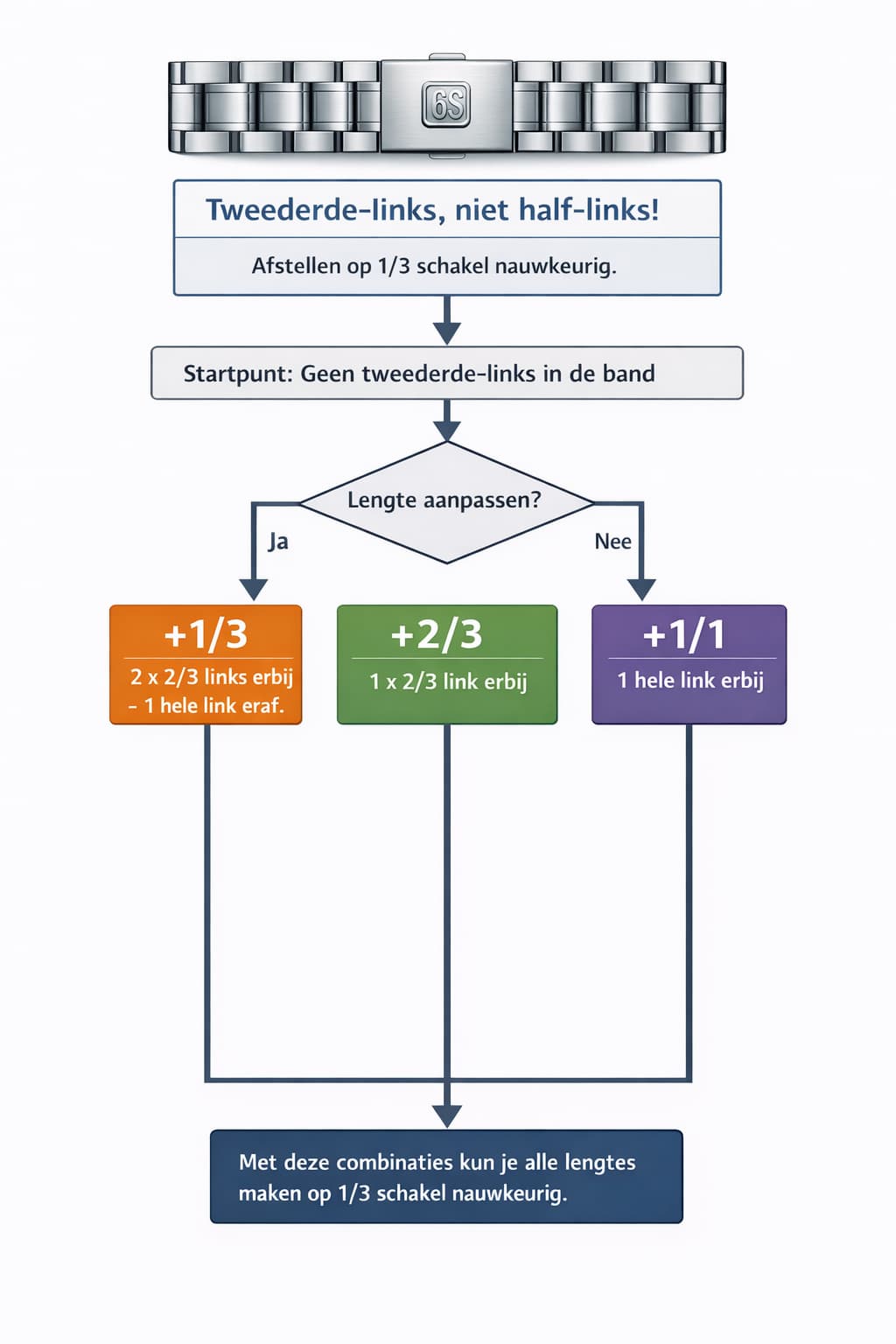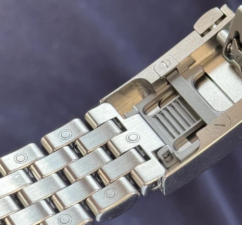 Ik ben natuurlijk geen engineer, maar bijvoorbeeld Apple, IWC en Lange kunnen het met een systeem waar je knopjes op de schakels indrukt die ze loskoppelt.