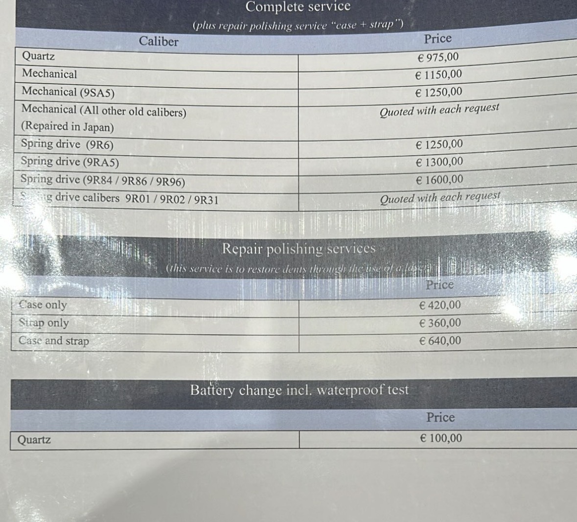1150 voor een mechanisch GS uurwerk waar je maar 1000 betaalt voor een Speedmaster service vind ik wel uit verhouding.