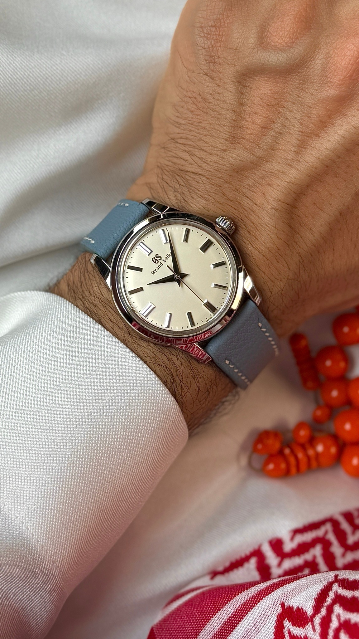 Flets grijsblauw gaat, maar blauw blauw vind ik niet mooi. En met gaat bedoel ik “gaat”, want ik wordt warmer van dingen als middenbruin, chocoladebruin, taupe, en zo verder. Althans, voor een ivoor-kleurige wijzerplaat die naar warmte neigt. Blauw bij een witte/zilveren plaat geen bezwaar.