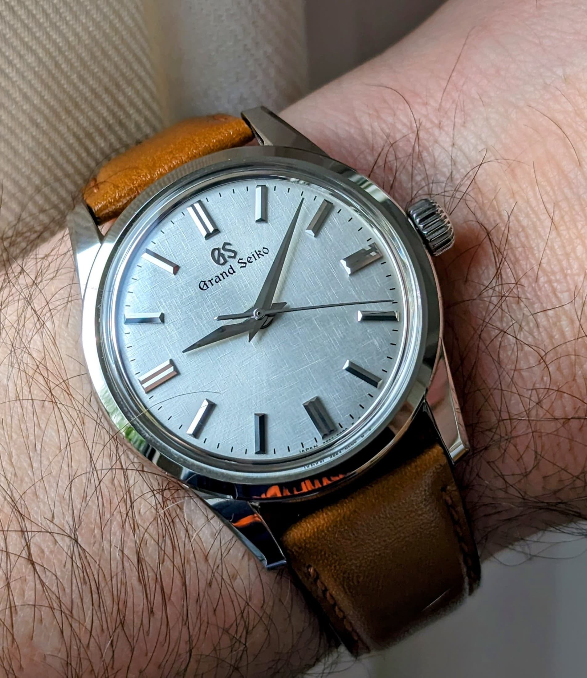 Ja, héél mooi, denk wel dat met andere band de kleur nog beter uit de verf komt. Ik vind de combinatie van 9F quartz zonder datum heel geslaagd, wijzerplaat mooi symmetrisch en werkelijk nooit hoeven te verzetten…