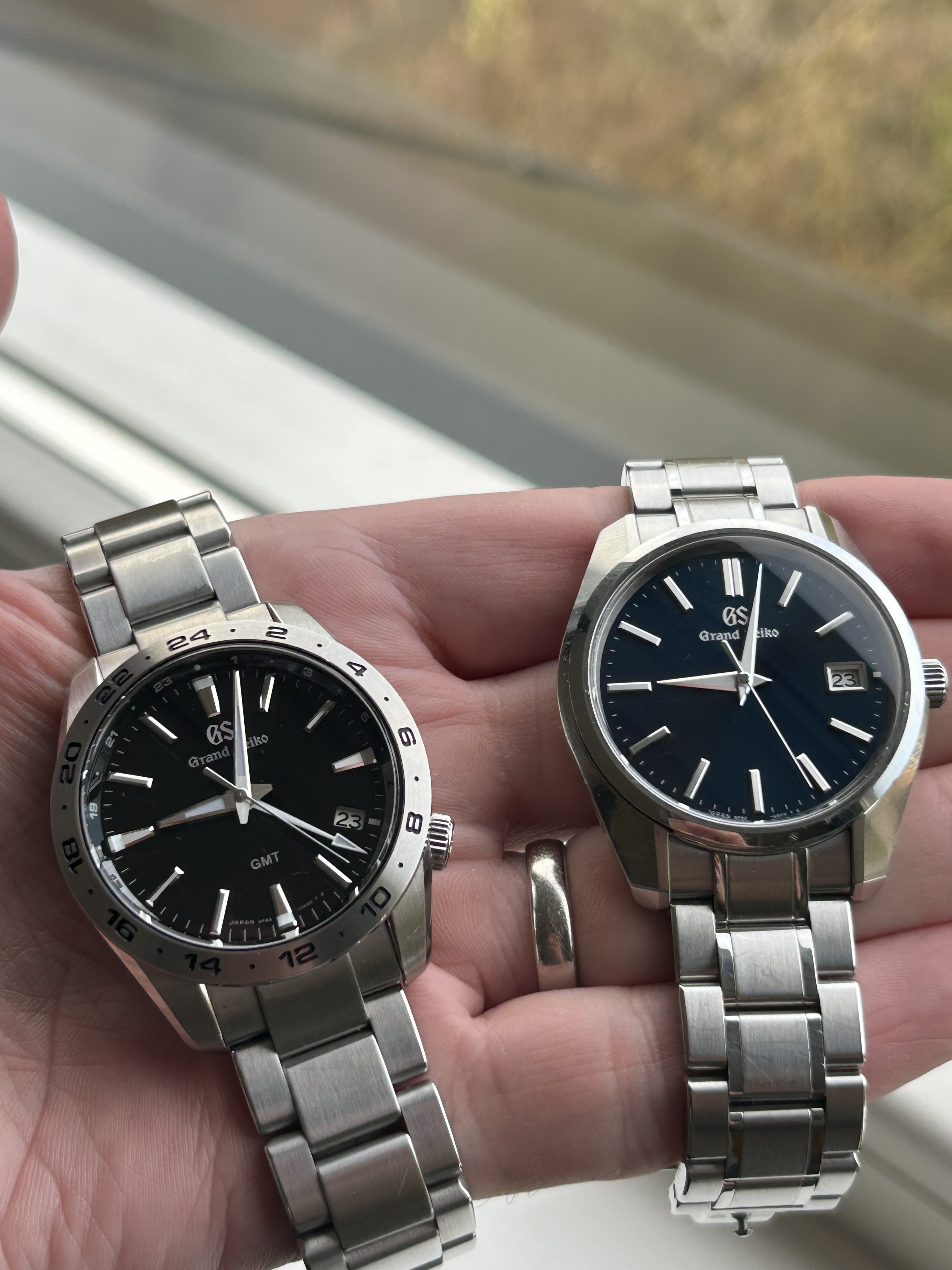 De quartz GMTās zijn twaalf tot twaalf en een half millimeter dik. Ik zou quartz overwegen als het een GMT moest zijn. Evengoed heb ik mijn SBGN verkocht wegens de maat. Het horloge droeg wel prima, maar voor mijn stijl is het allemaal te groot.