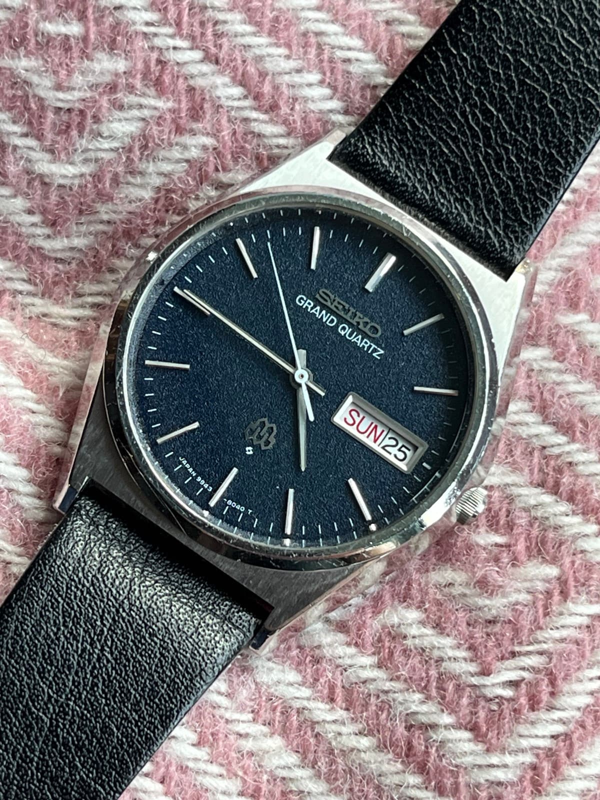 Zwevende Seiko logo (ligt niet direct op de plaat, maar is raised op kleine pootjes, voor een extra scherp ogend logo)
