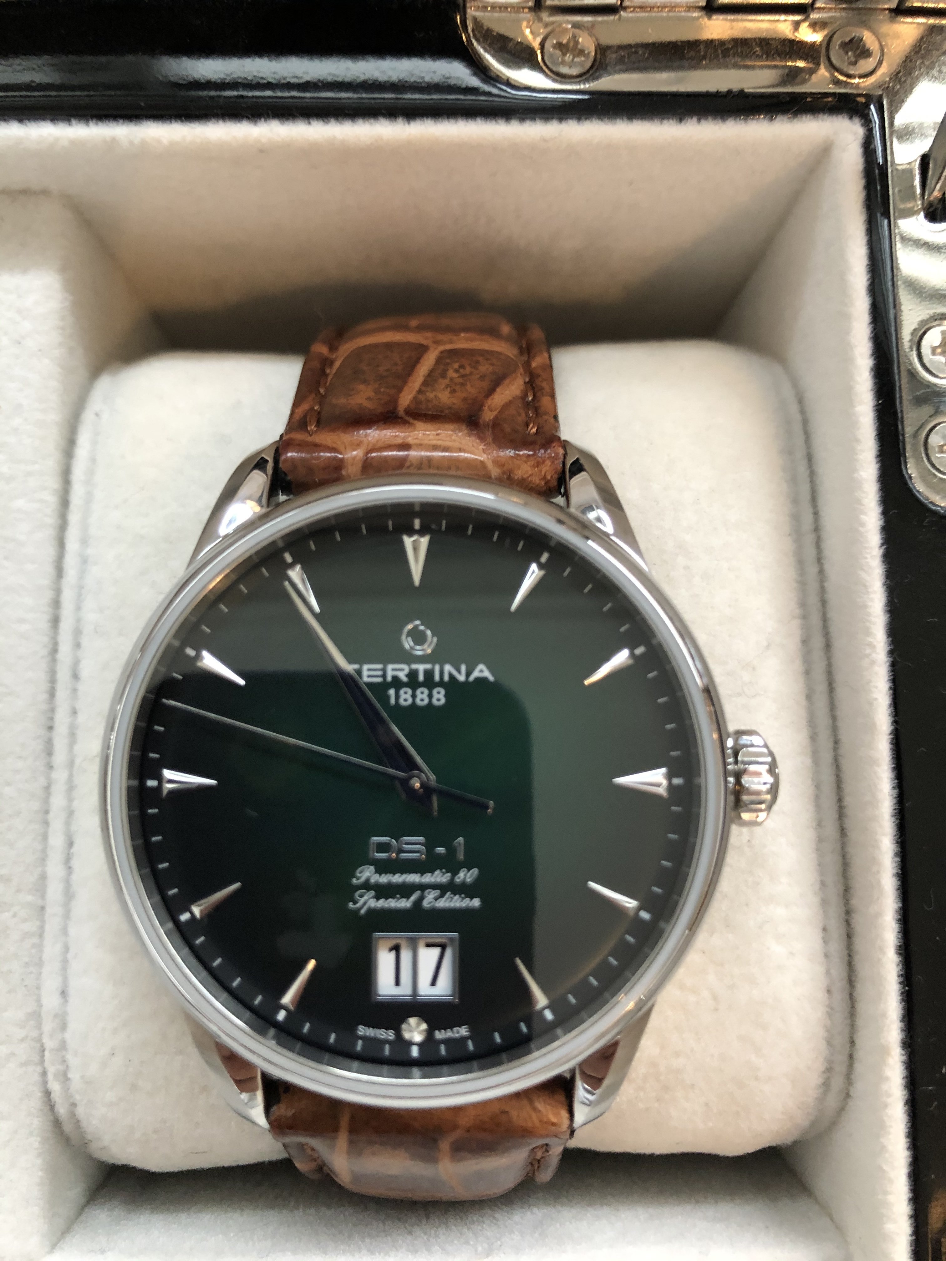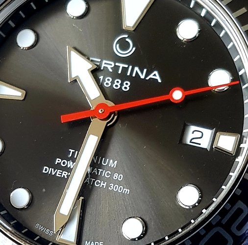 Maar, welk horloge heeft VIJF regels tekst tussen de zes en de wijzers ?