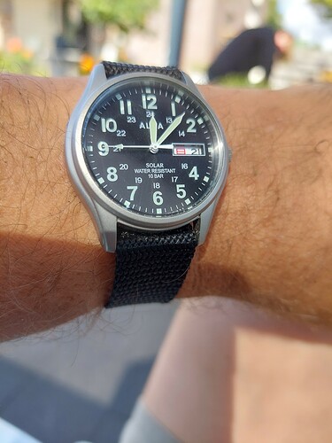 Alba solar fieldwatch. Alleen in Azië gevoerd submerk van Seiko. Nogal gehypet op YouTube. Kostte de 1e eigenaar 100 euro inclusief alles, verzendkosten, inklaring, BTW. Ideale beater. Niet te groot, 100m WR, duidelijk afleesbaar, stoere military look.