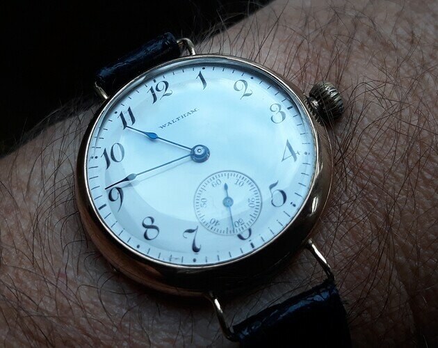 Bovenstaande heeft erg weinig kilometers gelopen en een ander oudje van me is een Longines van 1949, ik kijk als ik ze koop of er beweging in zit en dan gaan ze regelrecht naar de horlogemaker voor een service zonder dat ik ze draag.
