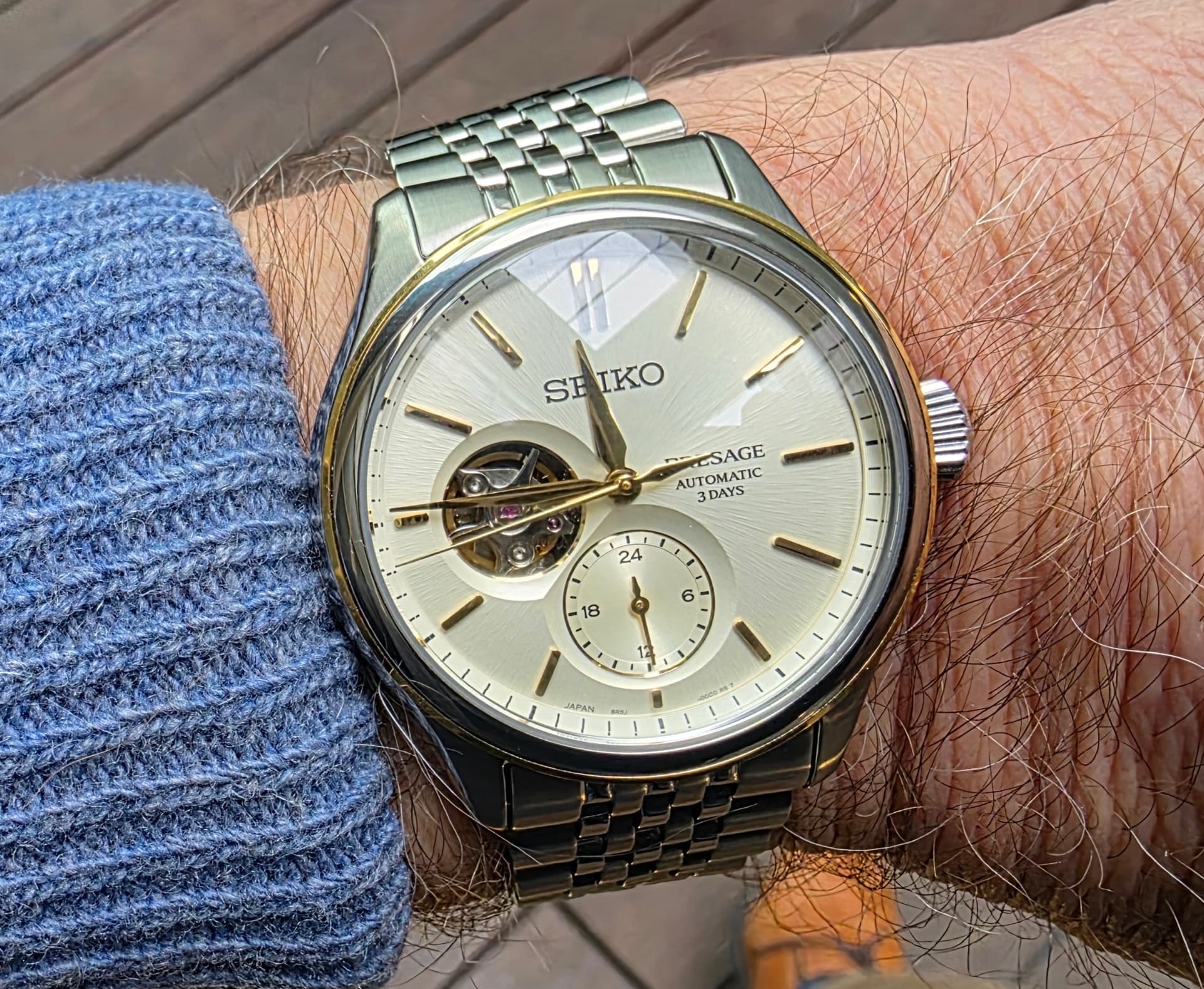 Na een hele tijd weinig dragen nu al weer een paar dagen deze om de pols. Misschien dat de lichte wijzerplaat toch een beetje compenseert voor het grauwe weer.
